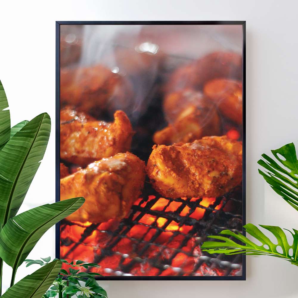 Renove sua área gourmet com modernidade e estilo com o Quadro Decorativo Frangos na Brasa. Esta peça traz a tradição dos churrascos e encontros familiares para a sua decoração, celebrando a delícia culinária dos frangos assados na brasa. Com uma imagem que remete ao sabor defumado e crocância única desses alimentos, este quadro é perfeito para quem aprecia a arte de preparar e saborear um bom churrasco. Adicione um toque de elegância e minimalismo ao seu espaço com essa peça charmosa e cheia de personalidade.