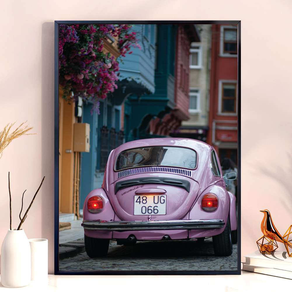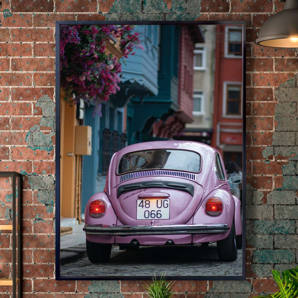 Quadro Decorativo Fusca Roxo Andando Na Cidade