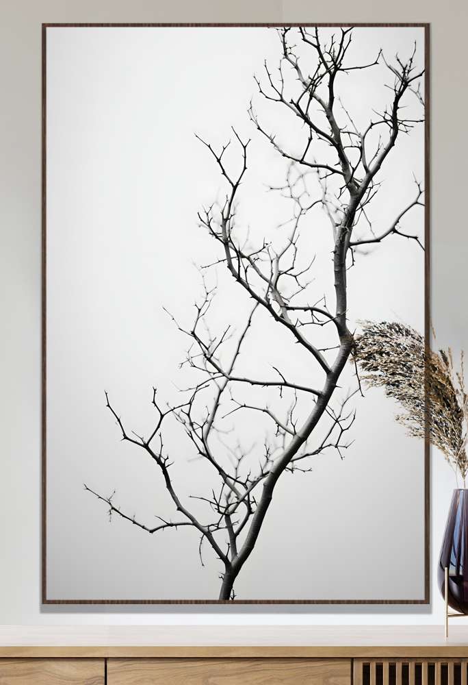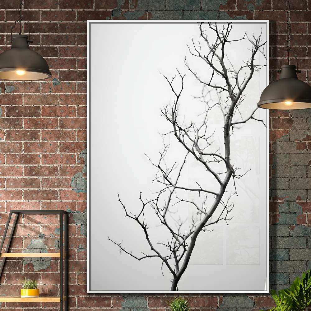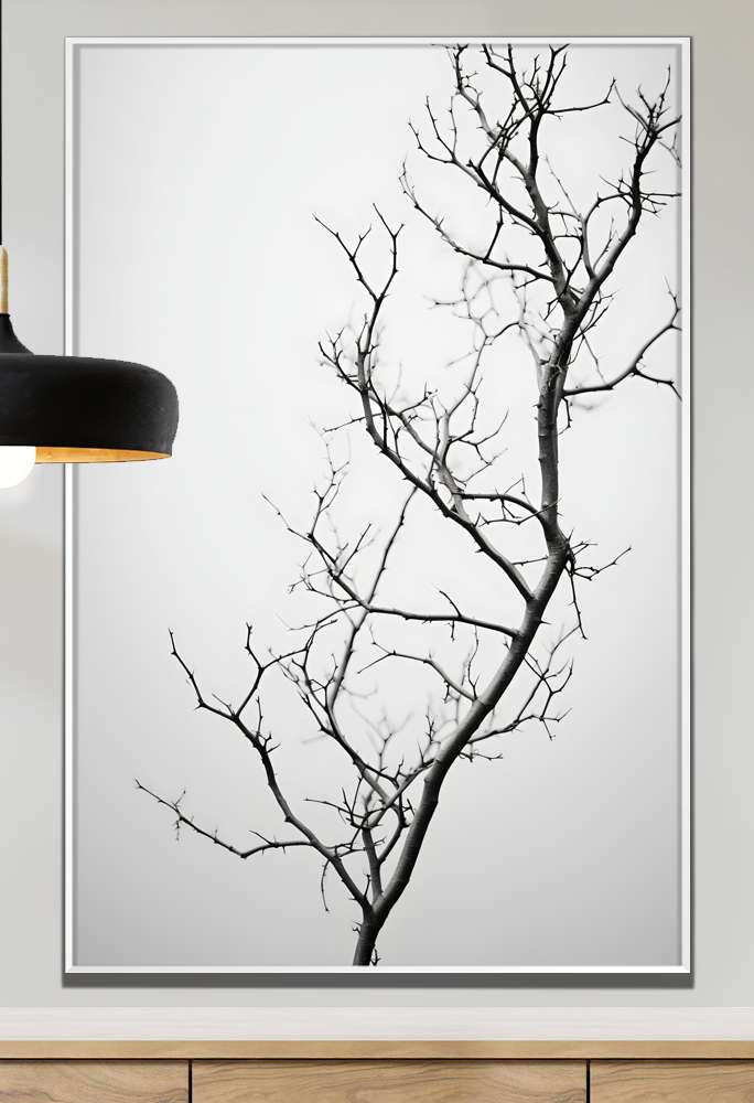 Este quadro decorativo em preto e branco traz a representação da beleza sutil da natureza. Com galhos secos que exibem formas sinuosas e intrincadas, ele reflete a essência do ciclo natural das estações. Ideal para quem busca uma decoração elegante e conectada com a simplicidade e serenidade da natureza. Adicione charme e harmonia ao seu ambiente com este quadro que captura momentos efêmeros, mas profundamente impactantes.
