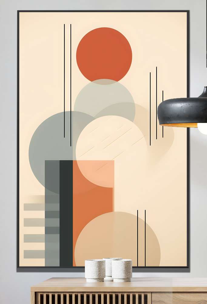 Explore a beleza da arte abstrata com formas geométricas sobrepostas em tons vibrantes de laranja e suaves de azul. Este quadro decorativo combina círculos e linhas que se entrelaçam, criando uma composição harmoniosa e moderna, perfeita para trazer um toque contemporâneo e elegante ao seu espaço. Ideal para quem busca uma decoração sofisticada e cheia de personalidade. Adicione esse toque de arte e estilo à sua parede e transforme seu ambiente em um espaço único e encantador.