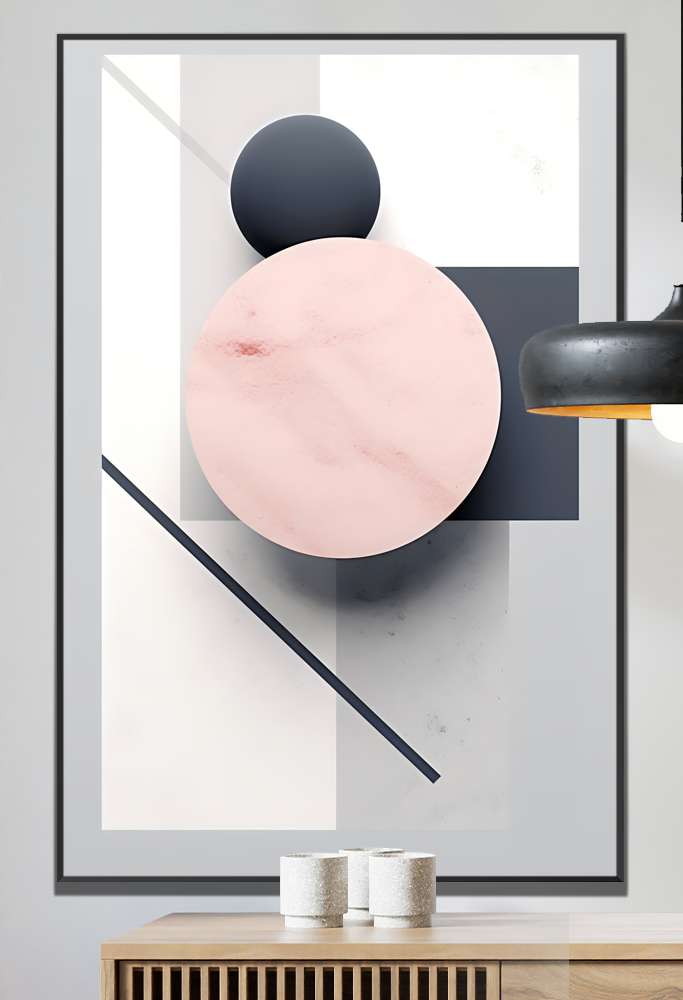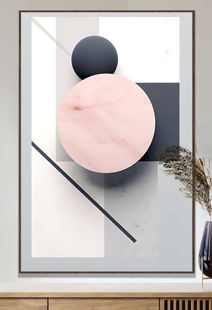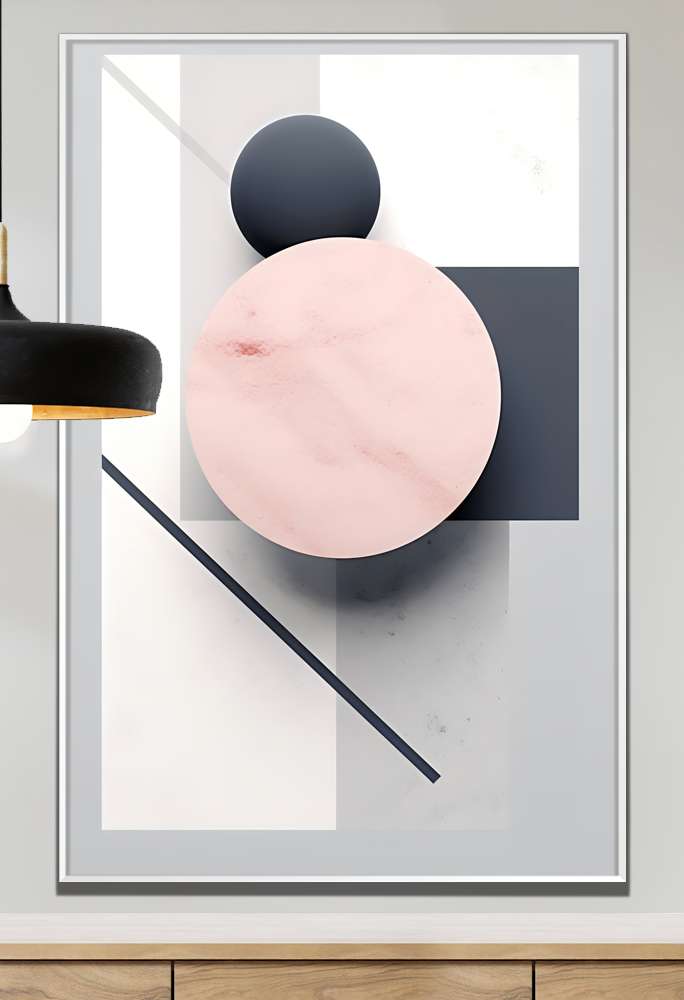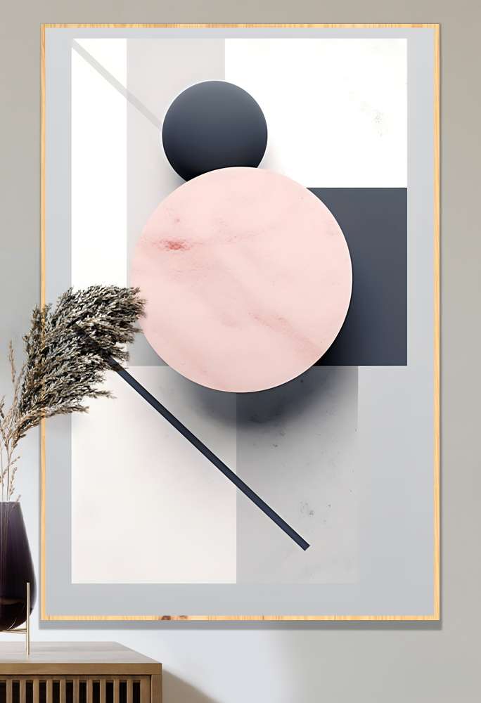 Celebre a simplicidade e o equilíbrio da arte geométrica abstrata com este Quadro Decorativo Geométrico Arte Abstrata com Círculo Rosa. Os círculos rosa e azul escuro se destacam em meio a retângulos e linhas, criando uma composição moderna e harmoniosa. Perfeito para quem ama design minimalista e contemporâneo, este quadro traz uma atmosfera de sofisticação para qualquer ambiente. Deixe-se envolver pela beleza e elegância desta peça única.