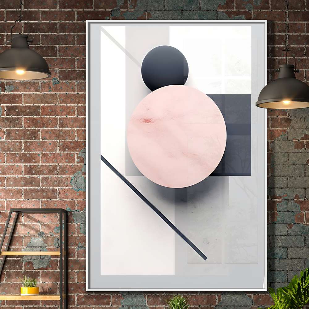 Quadro Decorativo Geométrico Arte Abstrata com Círculo Rosa