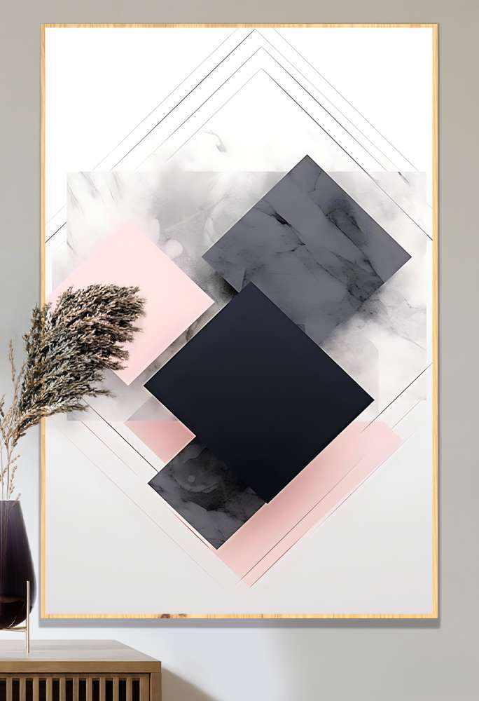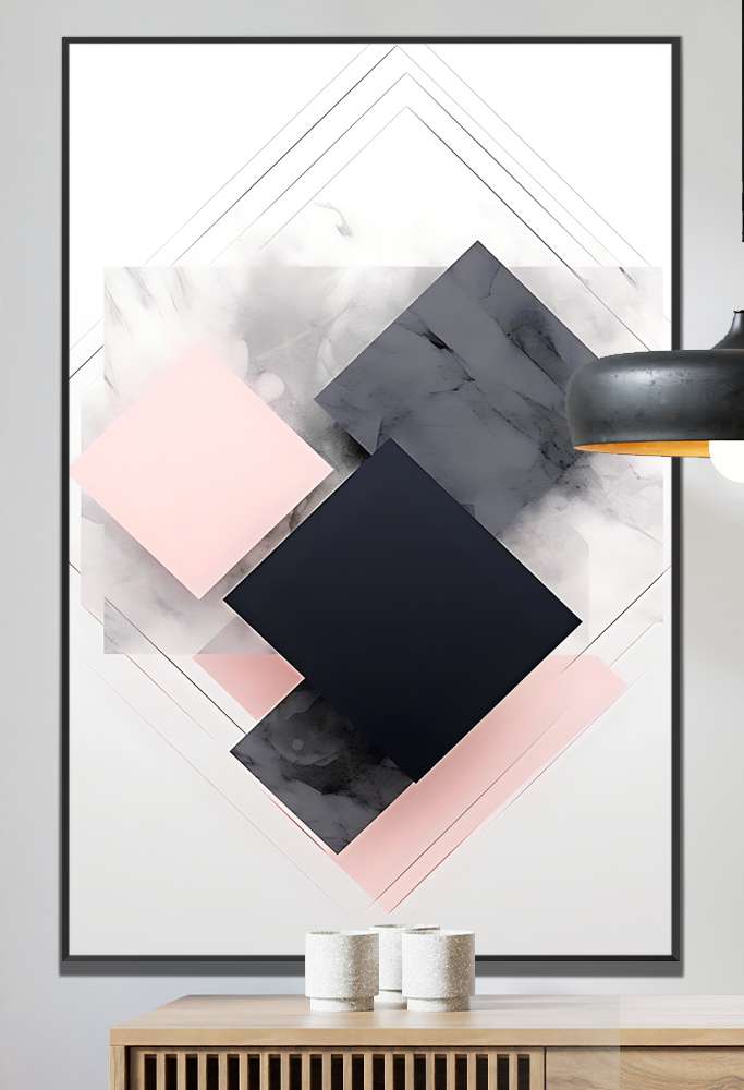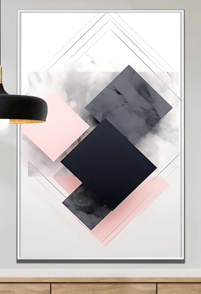 Este quadro decorativo de arte abstrata geométrica traz sofisticação e modernidade para o seu ambiente. Com tons de rosa combinados de forma harmônica com formas geométricas sobre um fundo branco, esta peça é perfeita para quem busca uma decoração contemporânea e elegante. Adicione um toque de dinamismo à sua casa ou escritório com esta obra de arte única. Transforme seu espaço em um ambiente cheio de estilo e personalidade com este quadro decorativo exclusivo.