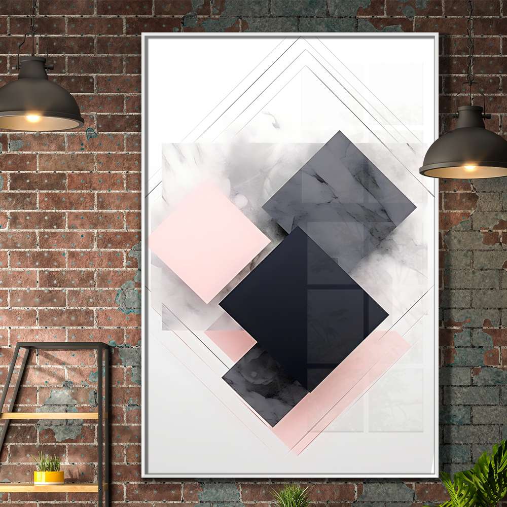 Quadro Decorativo Geométrico Arte Abstrata com Tons de Rosa Fundo Branco