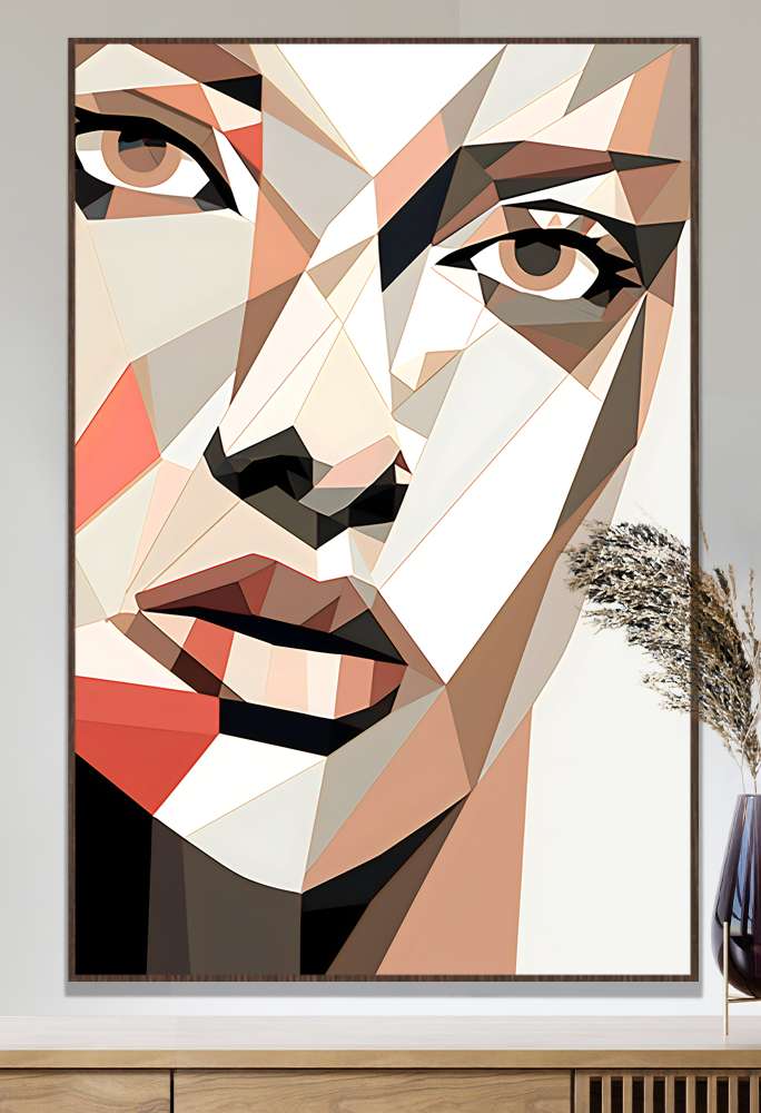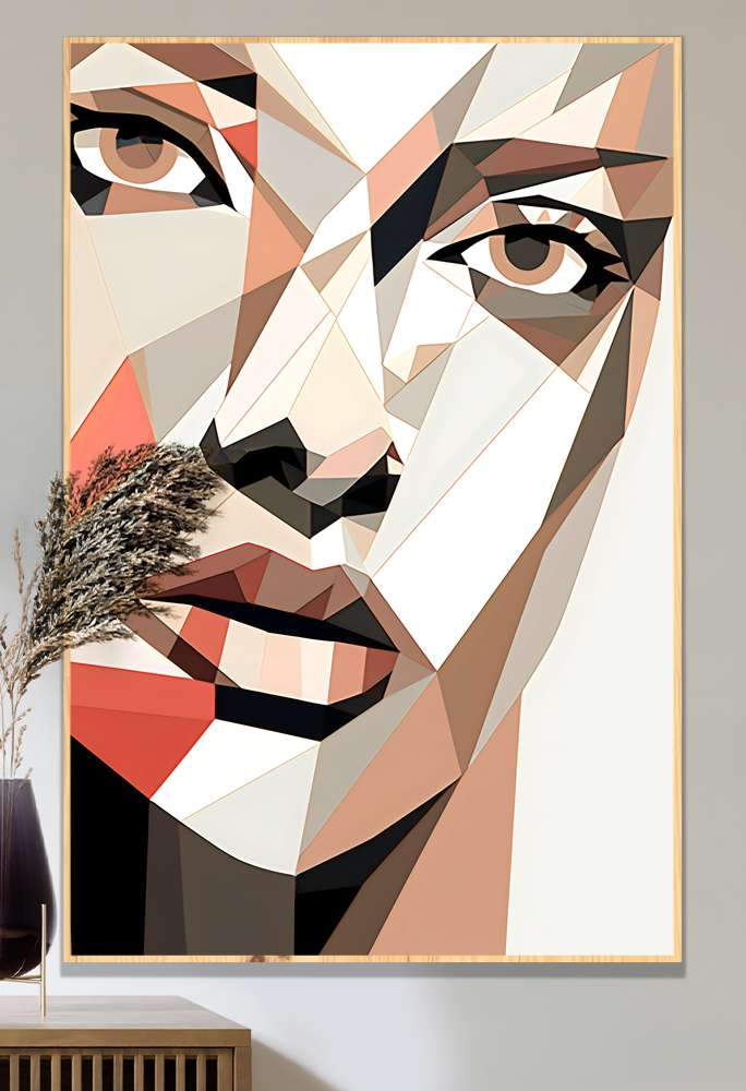 Quadro Decorativo Geométrico Arte Abstrata Forma de Rostoa
