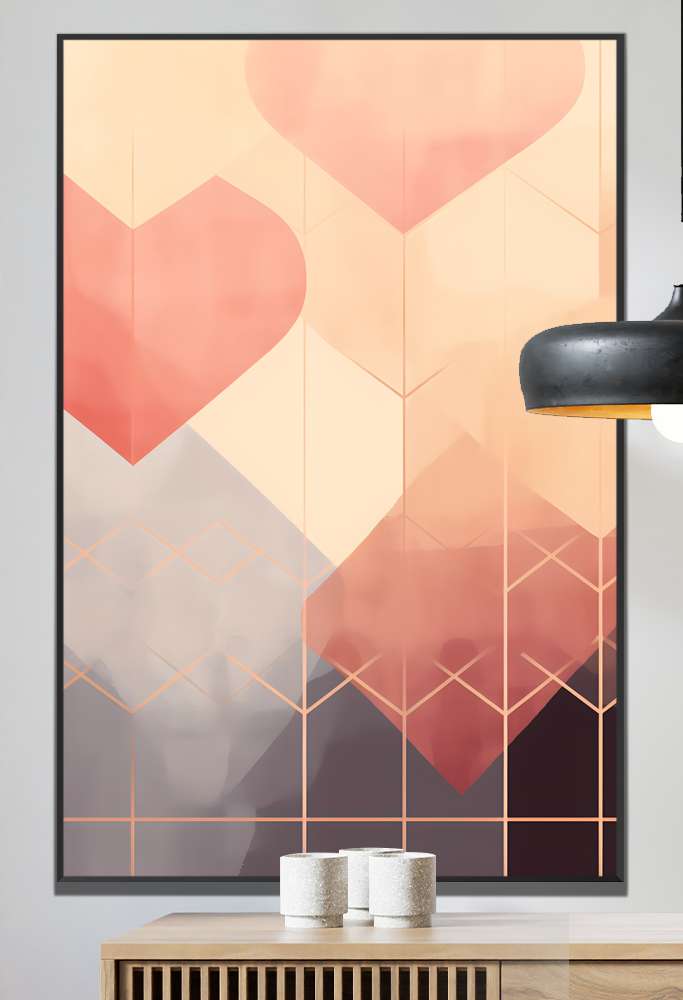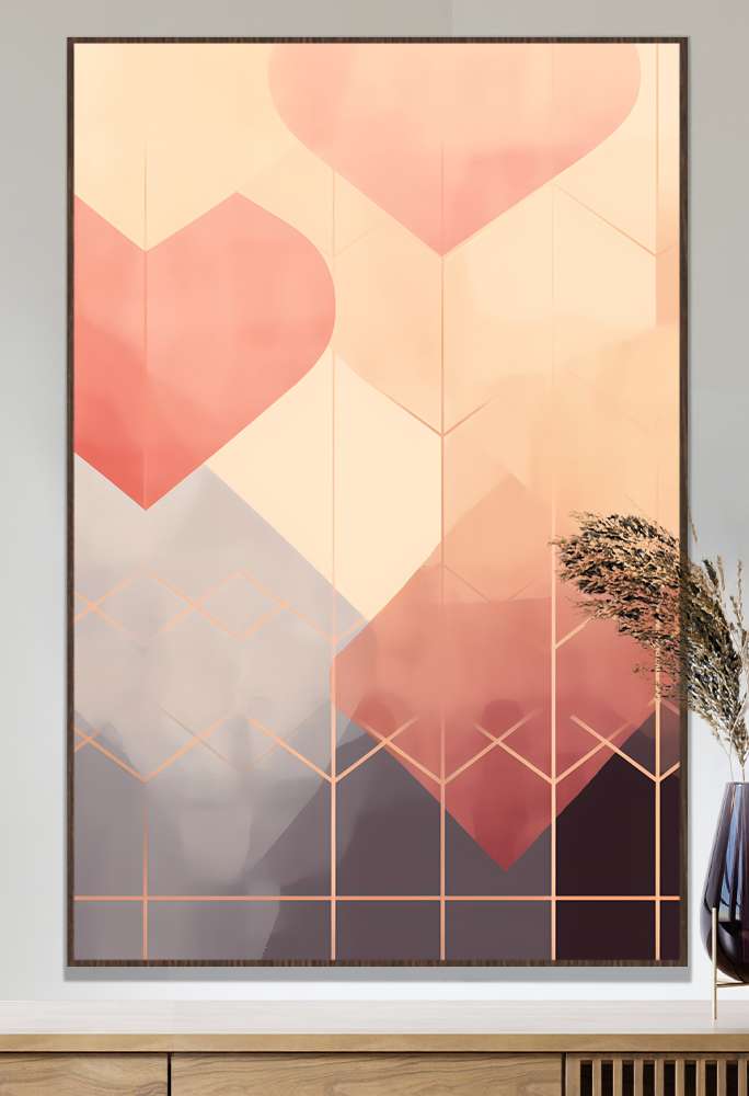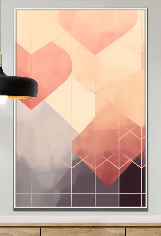 Adicione uma pitada de modernidade e tranquilidade à sua decoração com este deslumbrante Quadro Decorativo Geométrico Arte Abstrata em tons suaves de lilás e rosa. Com suas formas geométricas harmoniosas, este quadro transmite elegância e sofisticação, sendo perfeito para quem deseja um toque contemporâneo em sua casa. Transforme seu espaço em um ambiente moderno e tranquilo com esta obra de arte única.