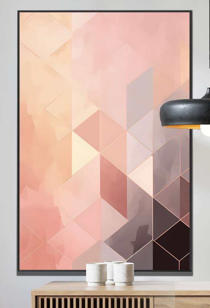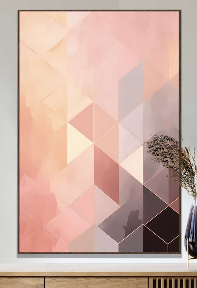 Transforme sua casa em um verdadeiro refúgio de sofisticação e serenidade com o Quadro Decorativo Geométrico Arte Abstrata em Tons de Rose. As combinações de formas triangulares e a paleta suave de rosés e nudes criam uma atmosfera contemporânea e elegante. Deixe-se envolver por essa obra de arte que irá transformar seu ambiente em um espaço cheio de estilo e personalidade.
