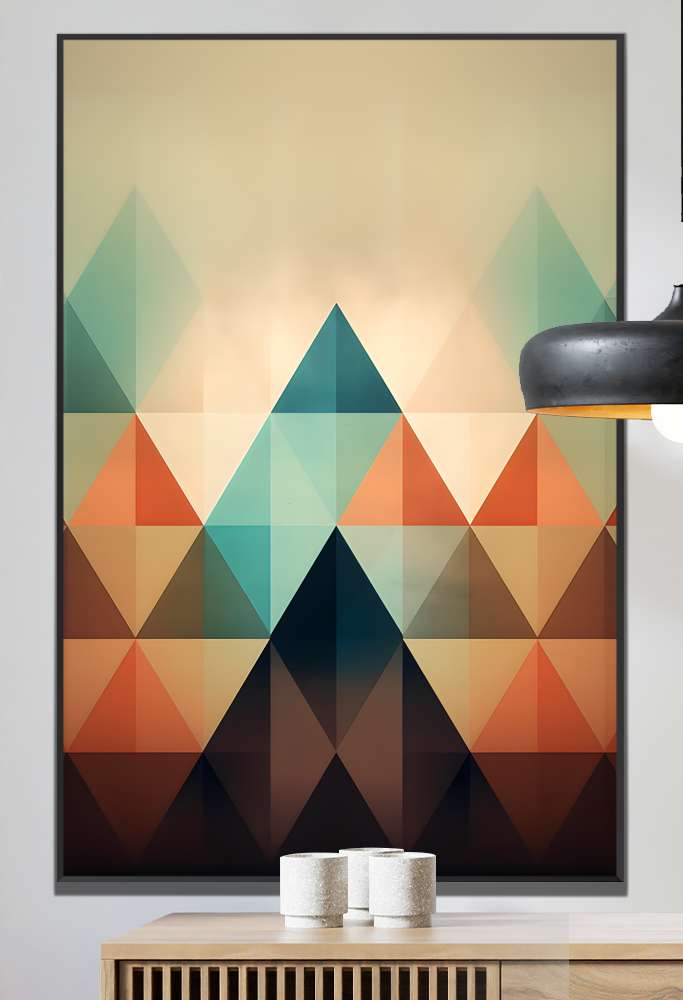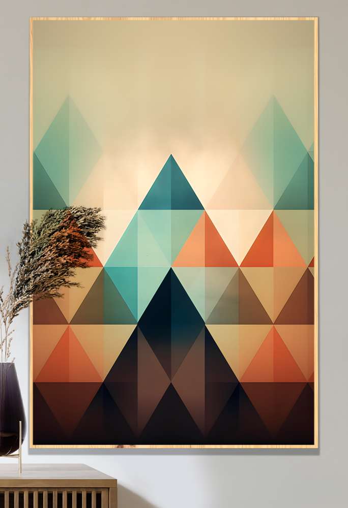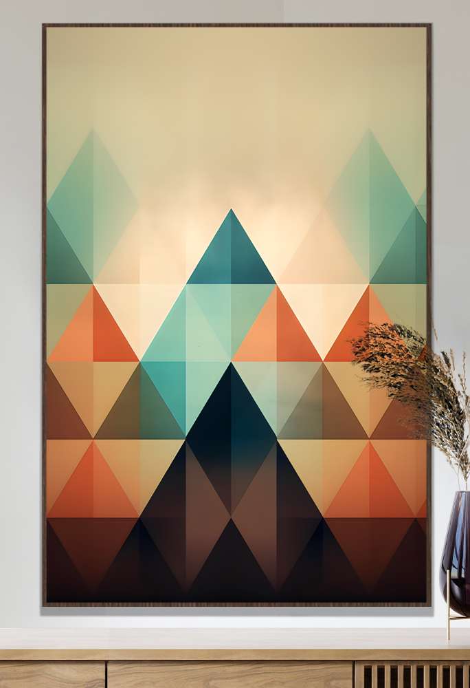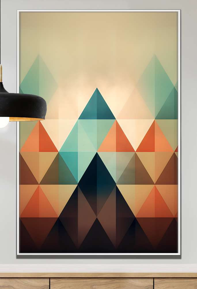 Transforme sua casa em um verdadeiro cenário de arte com o Quadro Decorativo Geométrico Arte Abstrata Triângulos. A combinação harmoniosa de formas e cores em triângulos sobrepostos cria padrões intrigantes em tons de verde, azul, laranja e marrom. Essa peça traz uma estética moderna e sofisticada, adicionando dinamismo e elegância ao seu espaço. Deixe-se envolver pela beleza da arte geométrica abstrata e transforme sua casa em um ambiente cheio de personalidade e estilo.
