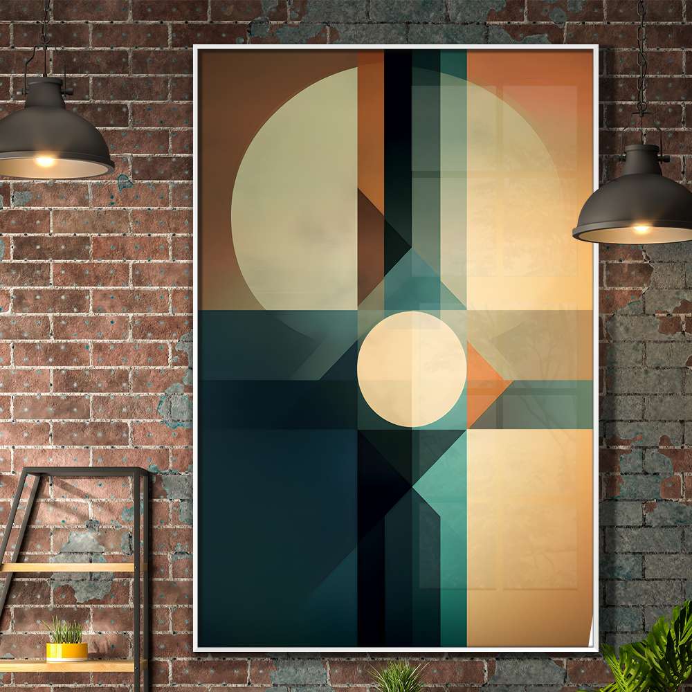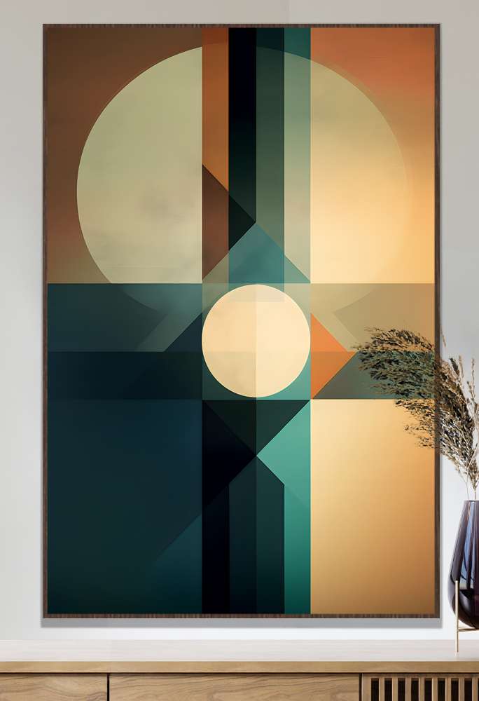 Quadro Decorativo Geométrico Arte Abstrata Verde e Laranja