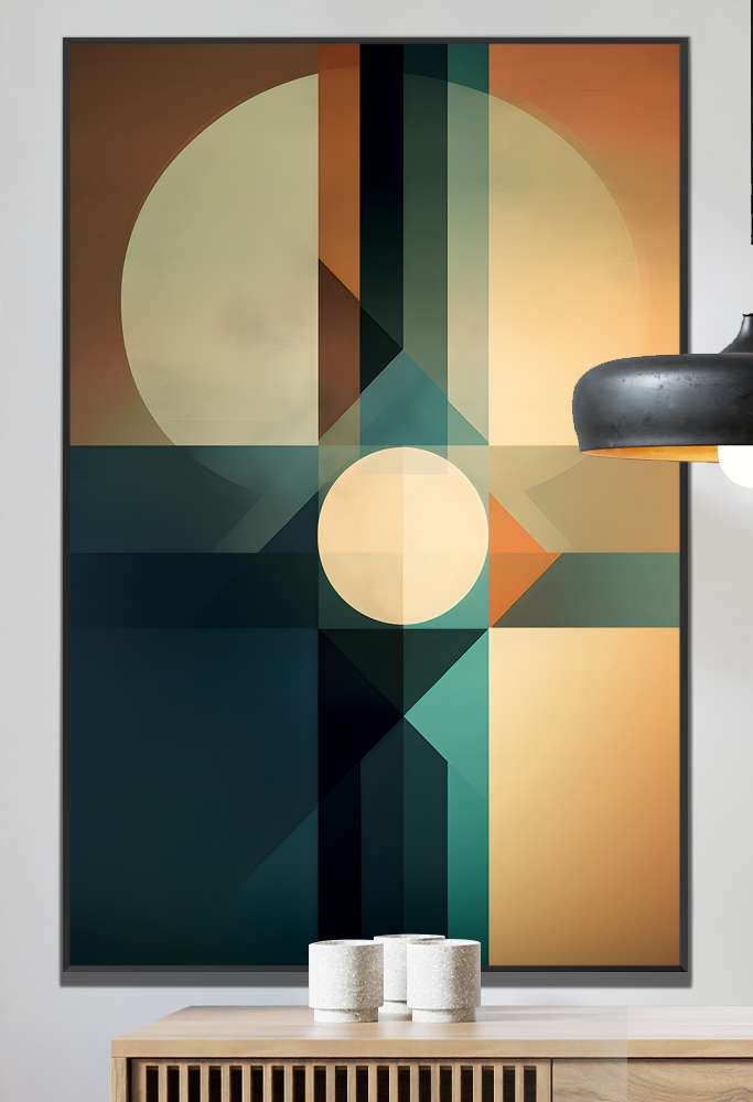 Adicione um toque de modernidade e sofisticação à sua decoração com o Quadro Decorativo Geométrico Arte Abstrata Verde e Laranja. A combinação harmoniosa de cores verdes e laranjas cria um jogo de formas geométricas que se entrelaçam, transmitindo uma sensação de equilíbrio e movimento ao ambiente. Este quadro é a escolha perfeita para quem busca uma peça única e cheia de personalidade. Aproveite para transformar seu espaço com essa obra de arte única.