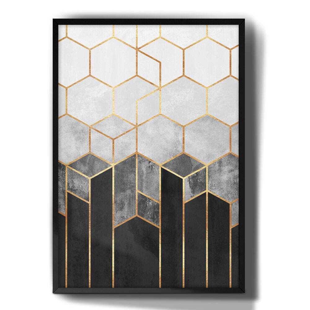 Transforme seu espaço em um lugar sofisticado e moderno com o Quadro Decorativo Geométricos 3D Mármore Preto Branco e Dourado 02. Com hexágonos e cubos em linhas douradas em uma perspectiva de imagem 3D, este quadro traz um toque de elegância para sua decoração. O fundo preto e branco simulando mármore adiciona sofisticação e personalidade ao ambiente. Ideal para quem aprecia arte abstrata e formas geométricas, este quadro é perfeito para quem busca uma decoração única e impactante. Adquira já e transforme seu espaço!