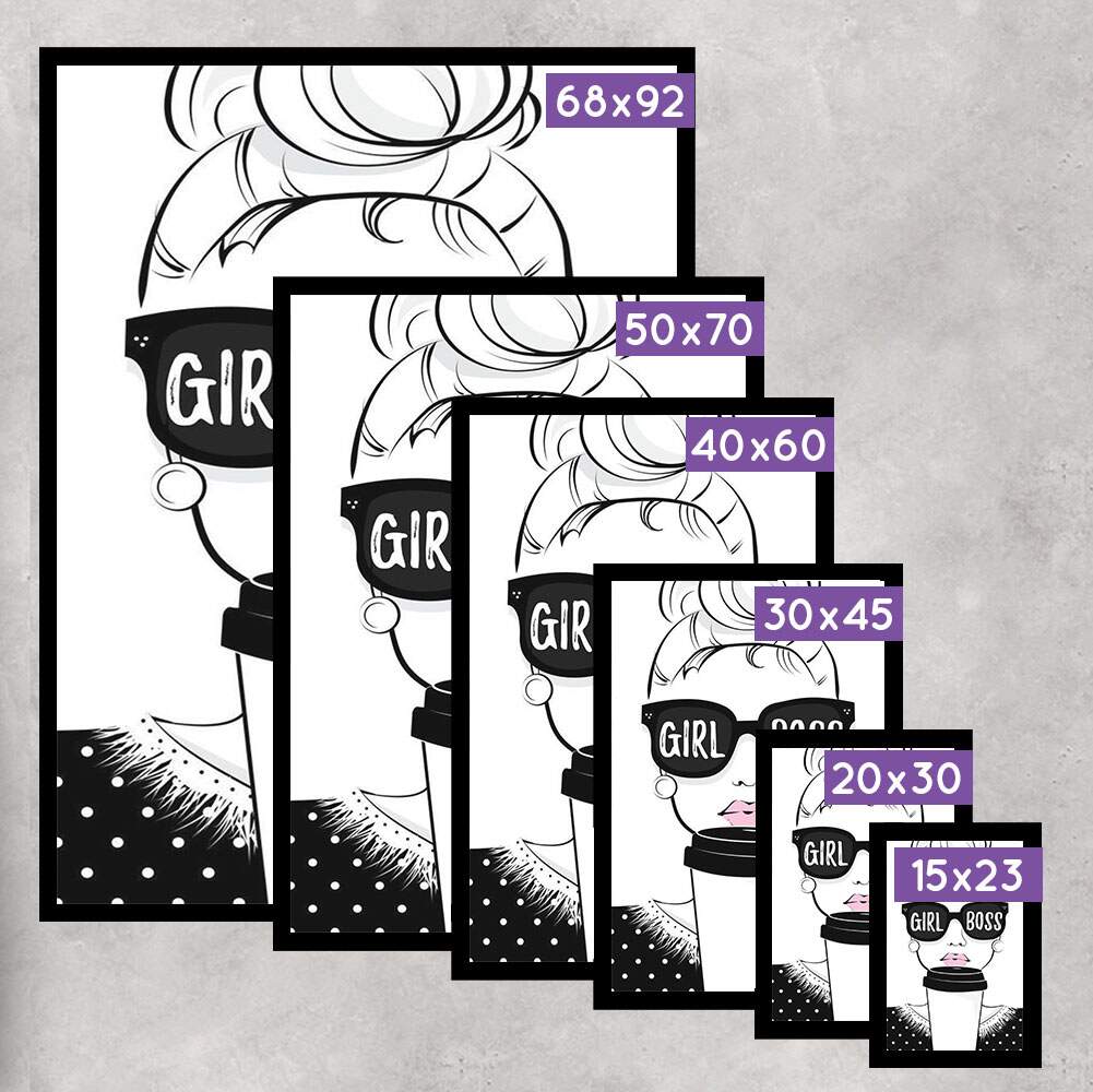 Este quadro decorativo Girl Boss é a representação perfeita da força, determinação e elegância feminina. Com um design moderno e cheio de estilo, a obra retrata uma mulher empoderada com batom rosa, brincos, um penteado despojado em coque e óculos escuros. Ideal para trazer inspiração e empoderamento para o seu ambiente, seja no escritório, em casa ou em qualquer outro lugar que queira adicionar um toque de personalidade única. Mostre ao mundo o poder da mulher moderna com este quadro decorativo exclusivo.