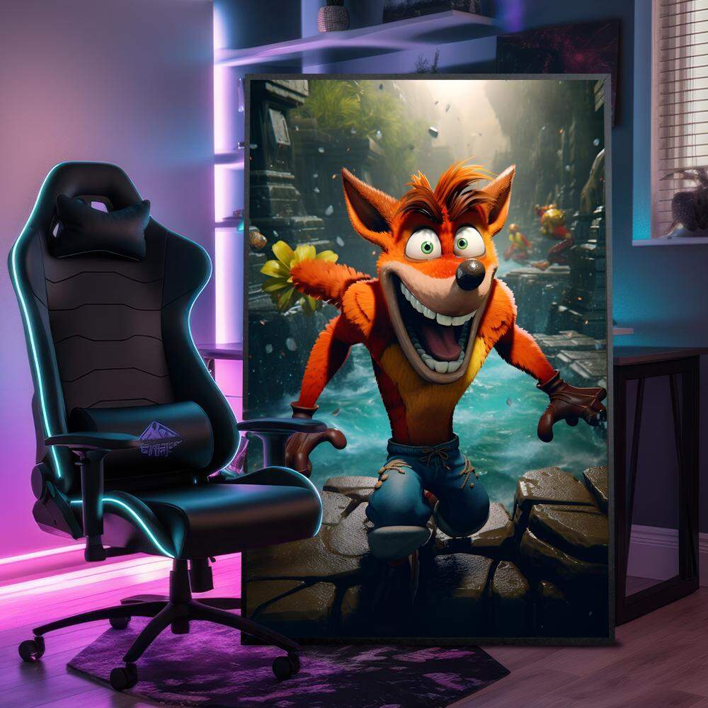 Este quadro decorativo inspirado no jogo Crash Bandicoot Remastered é perfeito para os fãs de videogames que desejam trazer um toque de nostalgia para a decoração do ambiente. A imagem retrata o icônico personagem Crash Bandicoot em meio a um rio tumultuado, evidenciando sua energia cativante e personalidade destemida. Com cores vibrantes e detalhes bem trabalhados, esta peça é ideal para quem busca uma decoração cheia de diversão e referências aos jogos que marcaram época. Adicione personalidade ao seu espaço com este quadro decorativo que exala aventura e alegria.