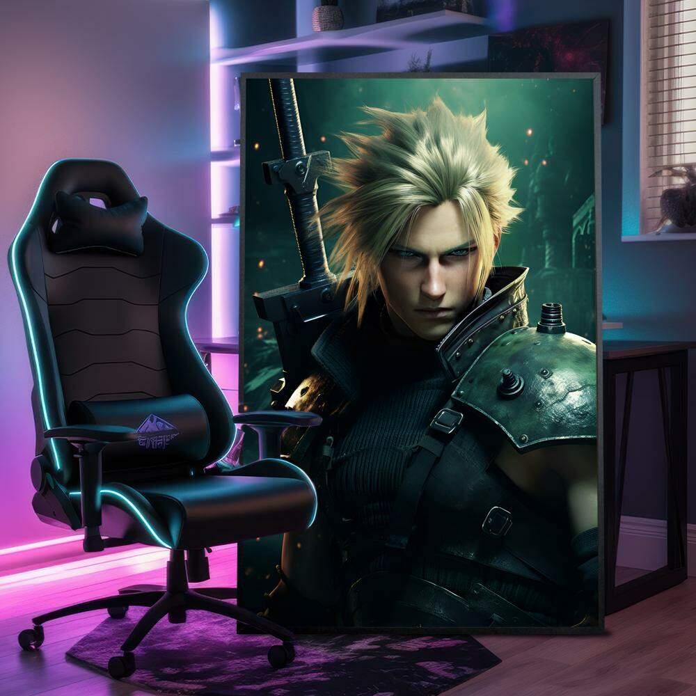 Transforme seu ambiente em um verdadeiro cenário de aventuras com o Quadro Decorativo Inspirado em Jogo Final Fantasy Personagem com Armadura. O personagem, com sua expressão determinada e cabelo loiro imponente, transmite toda a bravura e poder presentes no universo de Final Fantasy. Ideal para os fãs da série e para quem aprecia arte e fantasia, este quadro é a peça perfeita para dar um toque épico ao seu espaço. Adicione esse toque de magia e ação em sua decoração e mergulhe no incrível mundo de um dos jogos mais aclamados de todos os tempos.