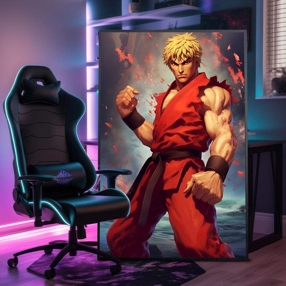 Este quadro decorativo é perfeito para os fãs de jogos de luta, especialmente para os amantes do icônico Street Fighter. A imagem retrata um personagem lutador com um kimono vermelho vibrante, transmitindo toda a coragem e força presentes no universo do jogo. Ideal para dar um toque de personalidade e estilo ao seu espaço, este quadro é uma homenagem aos aficionados por videogames e artes marciais. Adquira já e leve toda essa energia para a decoração da sua casa!