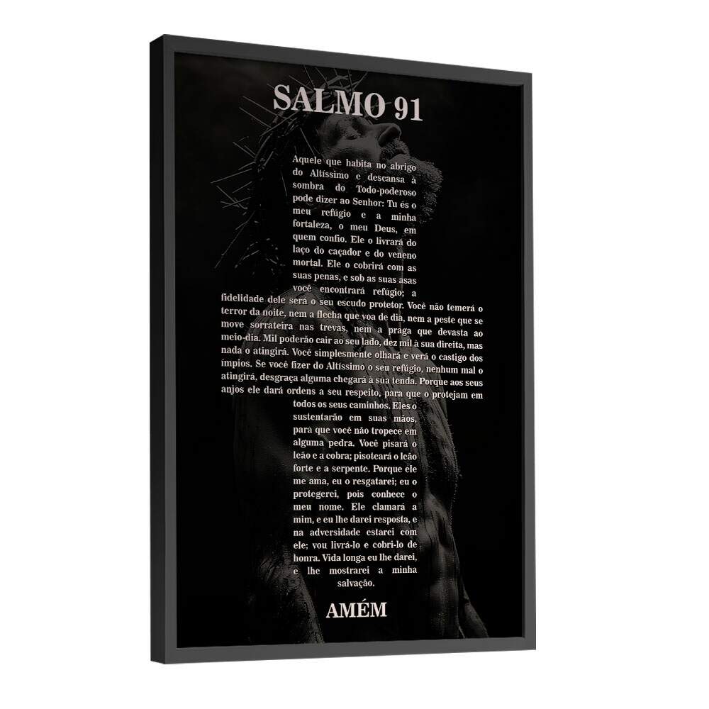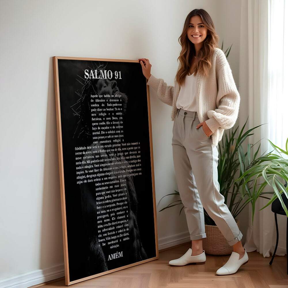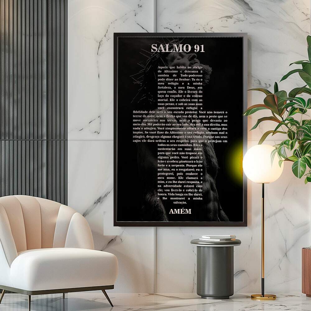 O Quadro Decorativo de Jesus, com seu fundo escuro e opacidade suave, cria uma atmosfera de serenidade em qualquer ambiente. O Salmo 91, em destaque, traz uma mensagem de refúgio e proteção, ideal para momentos difíceis. Este item não é apenas decoração, mas uma fonte de conforto e fé. Transforme seu espaço em um santuário de paz!