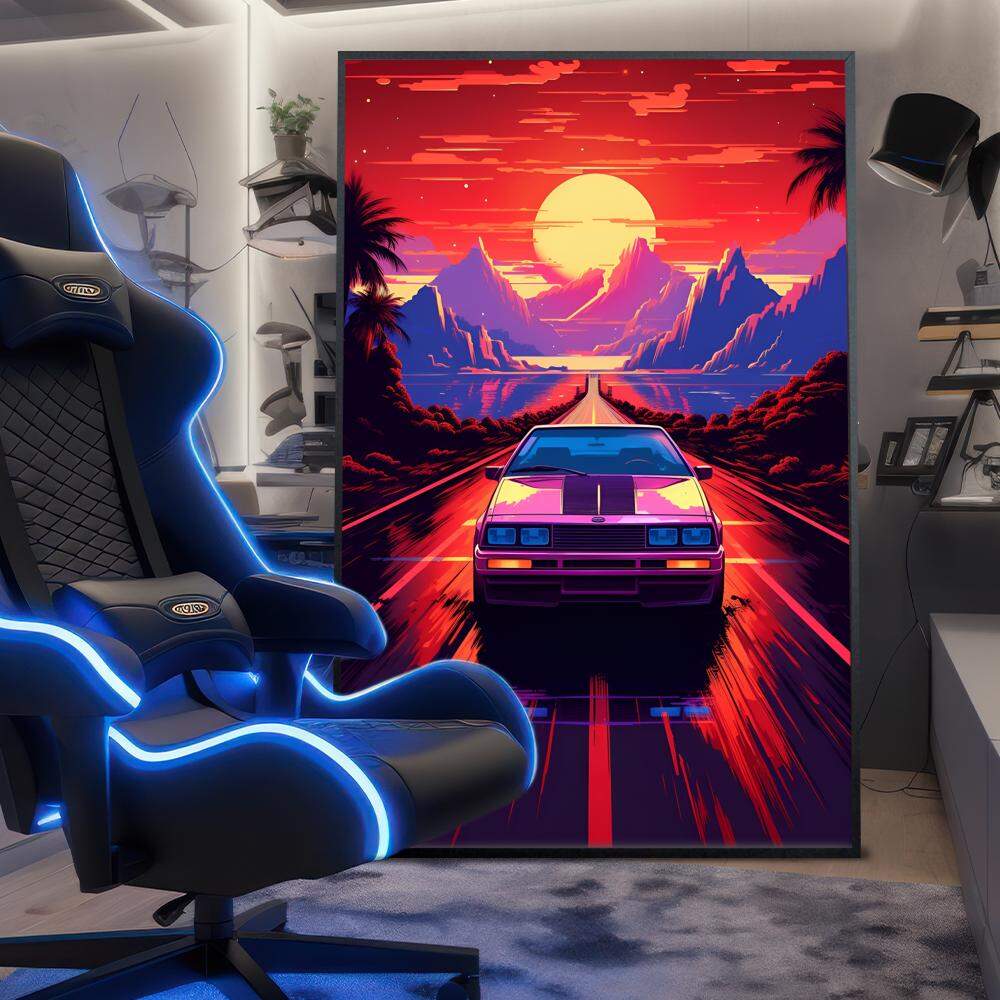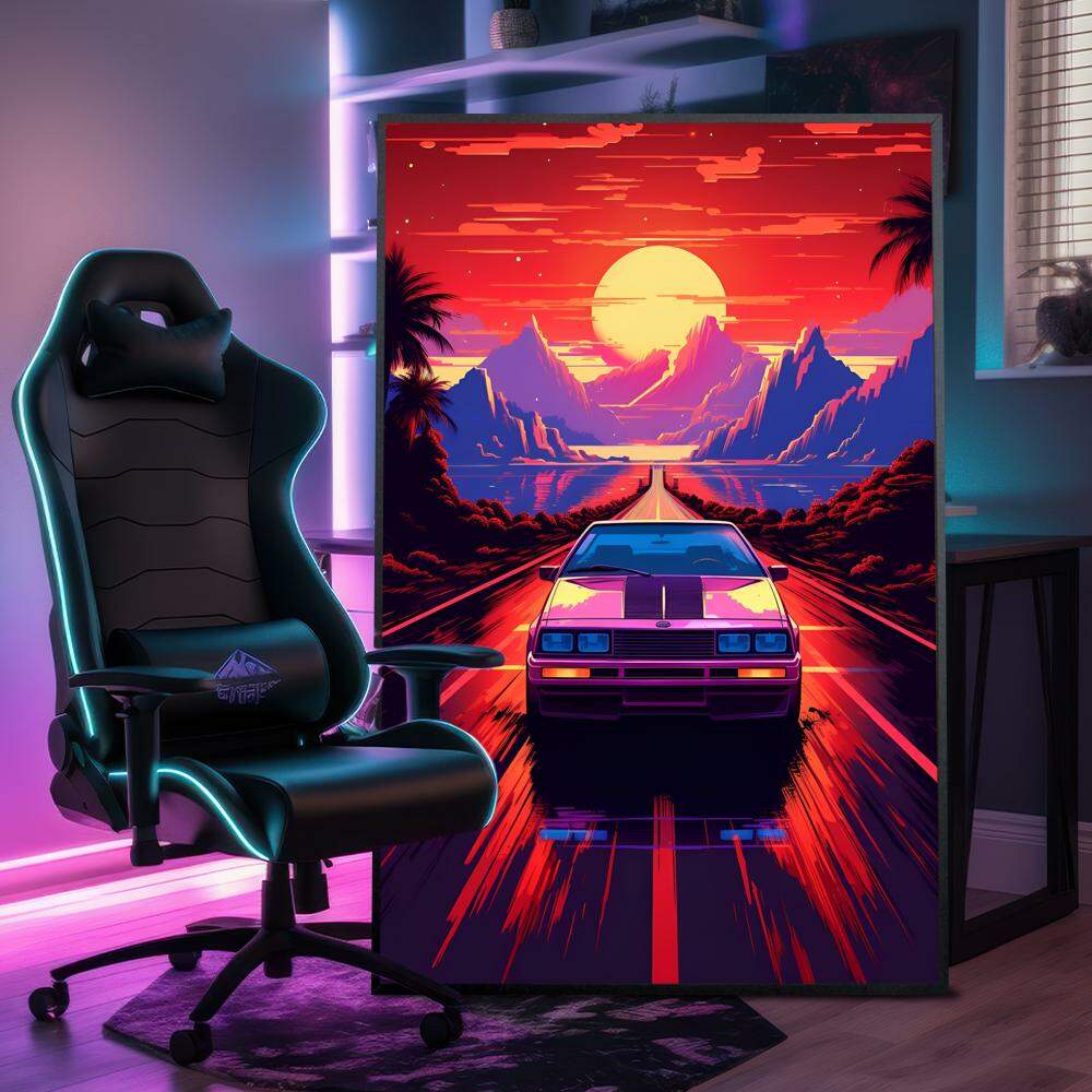 Transforme a decoração do seu espaço com o Quadro Decorativo Jogo de Corrida. As linhas aerodinâmicas dos carros de corrida se destacam em meio a um belo pôr-do-sol, transmitindo toda a velocidade e adrenalina desse esporte. As montanhas ao fundo acrescentam um toque de esplendor a essa paisagem vibrante. Deixe-se envolver por essa combinação única de força e beleza em sua parede. Ideal para os apaixonados por velocidade e aventura. Adquira já o seu e acelere a decoração da sua casa!