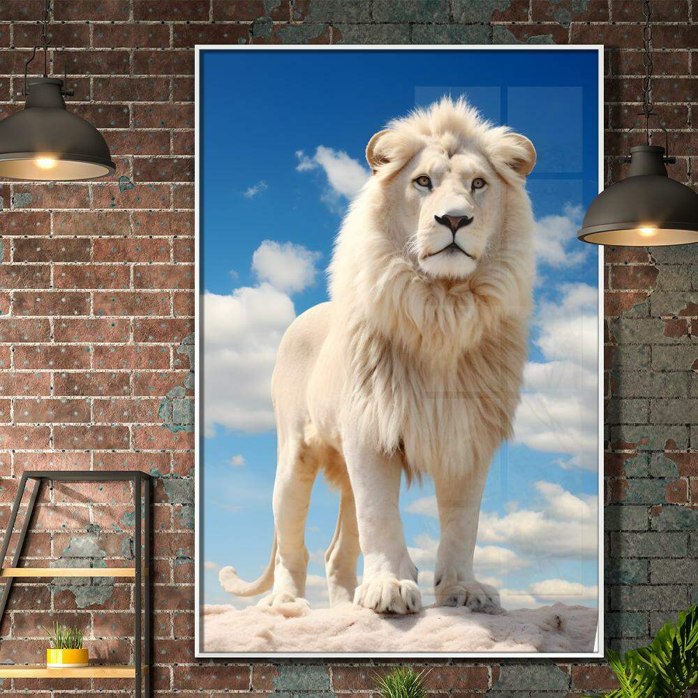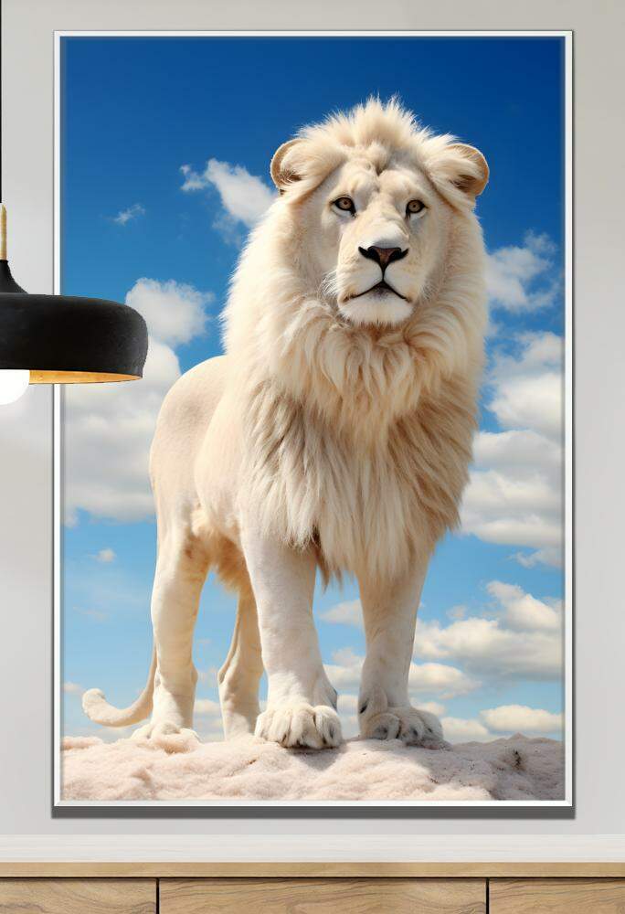 Quadro Decorativo Leão Branco Poderoso com Belo Céu no Fundo
