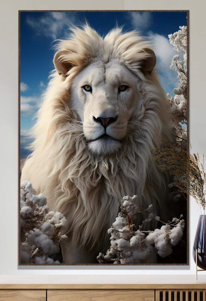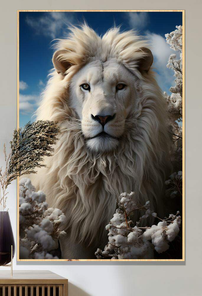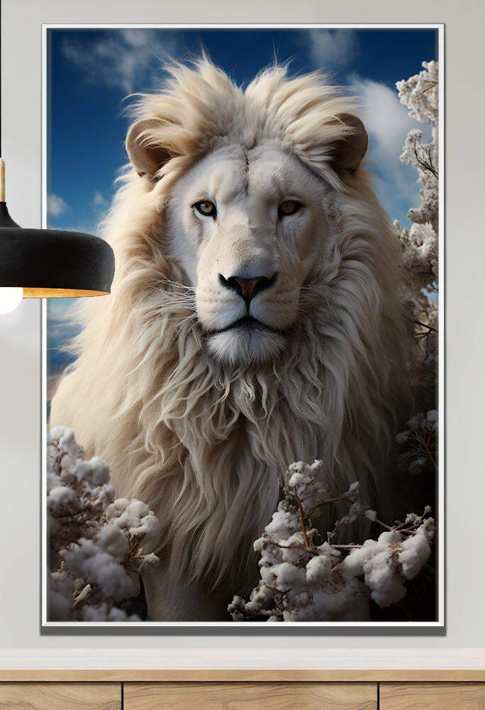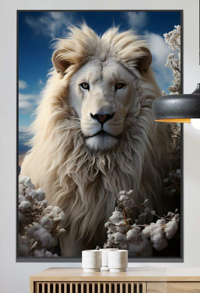 Quadro Decorativo Leão Branco Transmitindo Paz e Serenidade