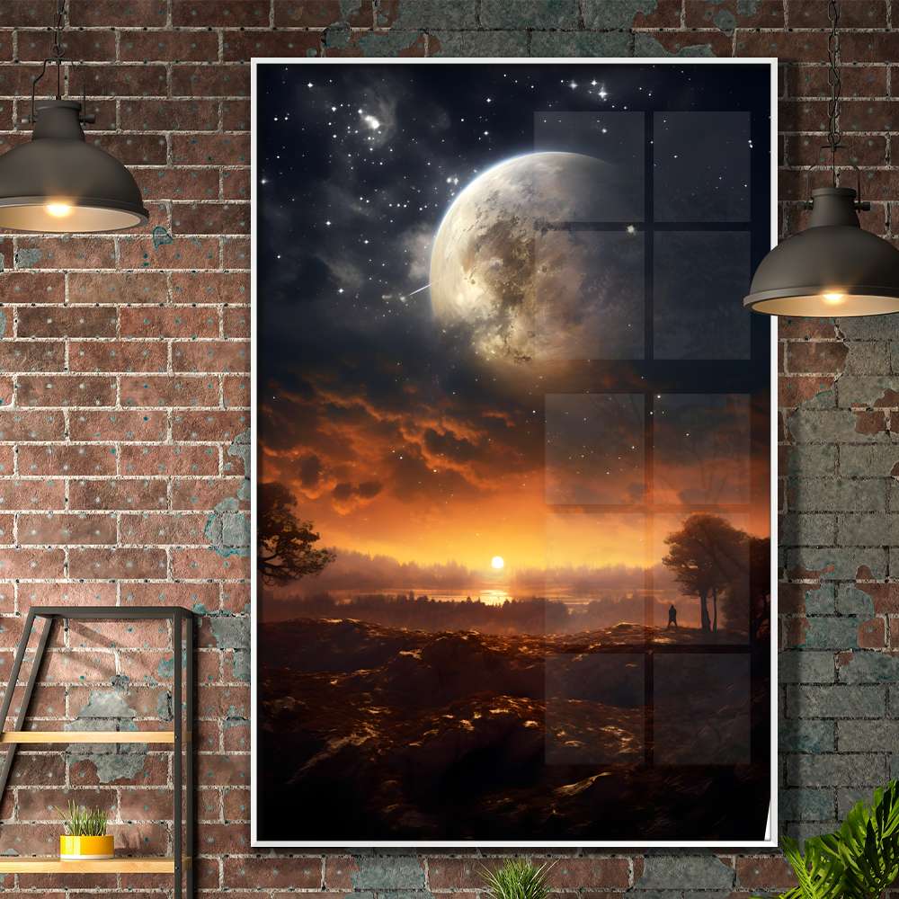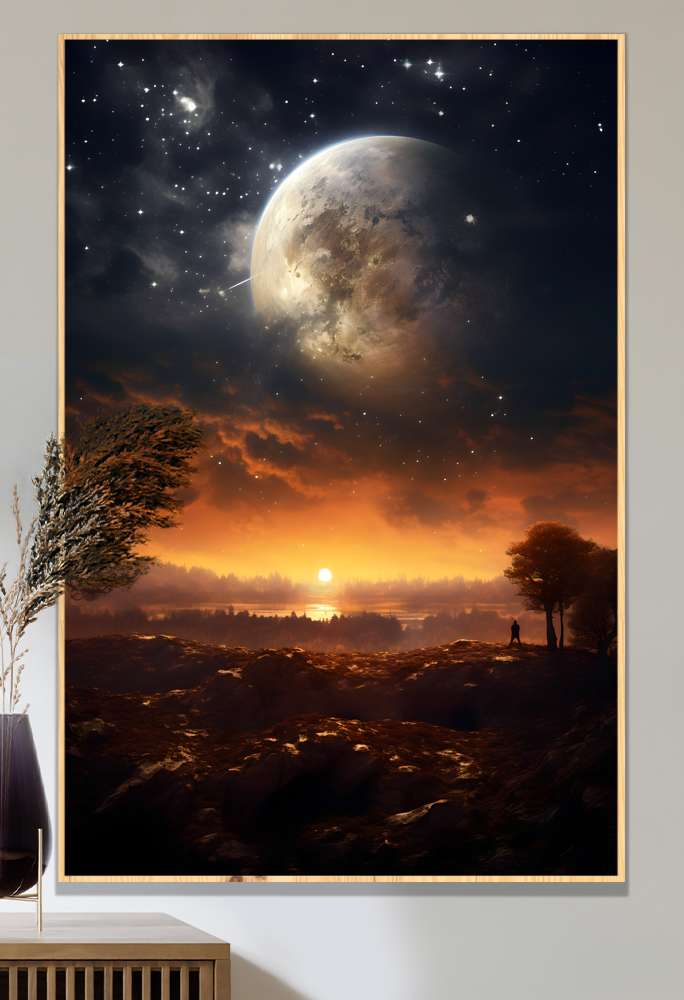 Quadro Decorativo Lua e Sol Iluminando Savana