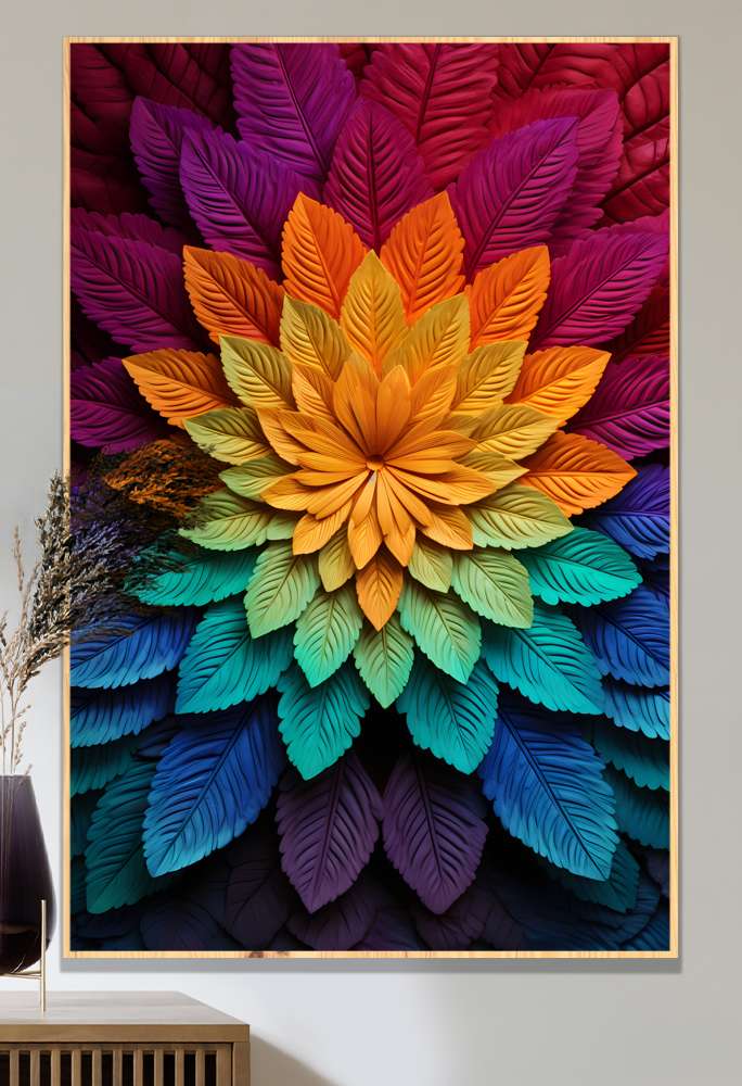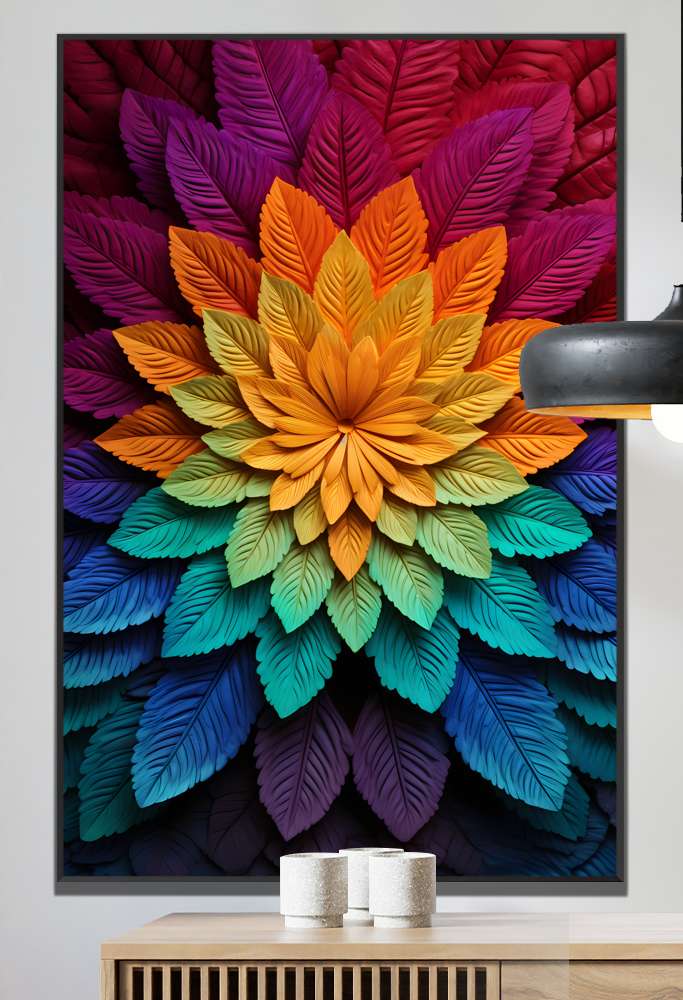 Este quadro decorativo de mandala feita de folhas coloridas é muito mais do que uma simples peça de decoração - é uma manifestação de harmonia e paz interior. As folhas coloridas se irradiam do centro, criando uma vibrante exibição de tons que vão do vermelho ao roxo, passando pelo laranja, verde e azul. Se você procura adicionar um toque espiritual e ritualístico ao seu ambiente, este quadro é a escolha perfeita para trazer equilíbrio e boas energias para o seu lar. Permita-se mergulhar na simbologia das mandalas e transforme sua casa em um refúgio de tranquilidade e serenidade.