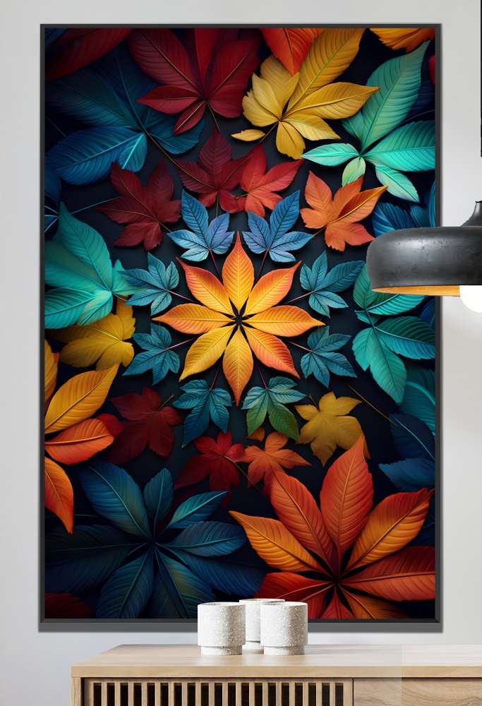Transforme o seu ambiente com o Quadro Decorativo Mandala Feita de Folhas, uma verdadeira celebração da natureza. Cada folha presente na mandala possui nuances de vermelho, azul, laranja e verde, simbolizando a harmonia e a diversidade do mundo natural. As cores vibrantes trazem a beleza e a tranquilidade das florestas para dentro do seu espaço, criando uma atmosfera serena e equilibrada. Deixe-se envolver por essa obra de arte única e conecte-se com a natureza no conforto do seu lar.