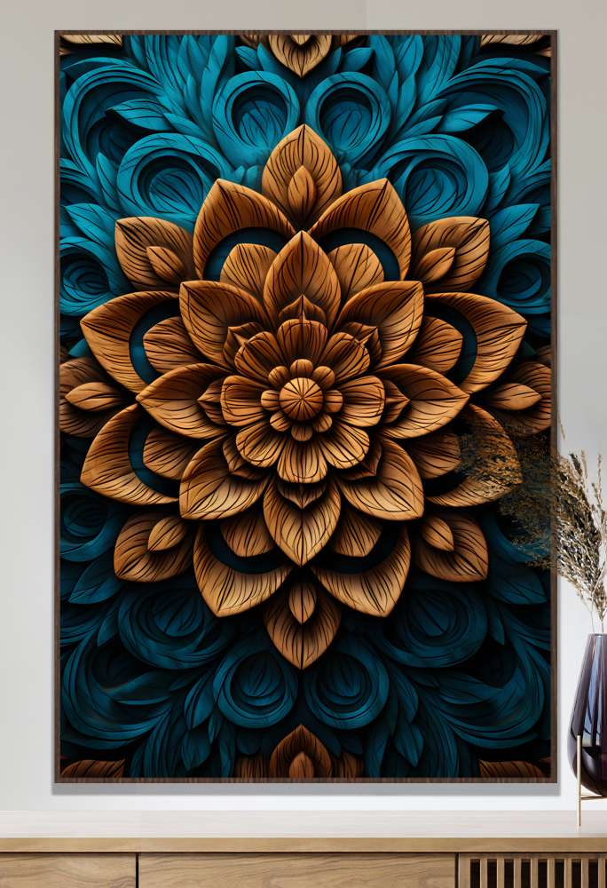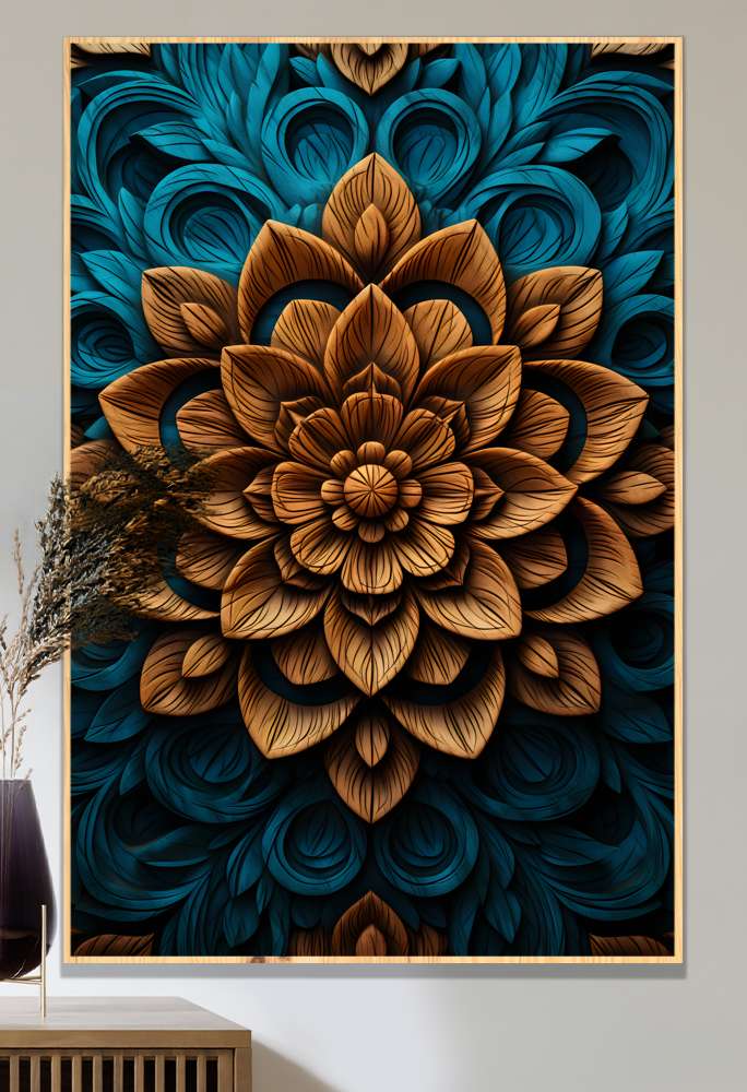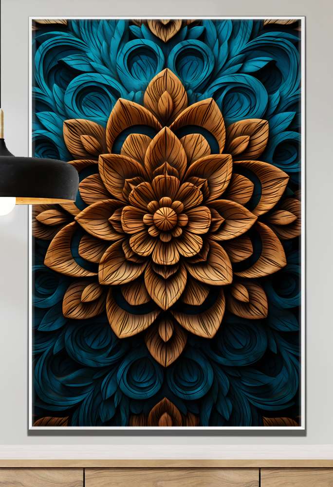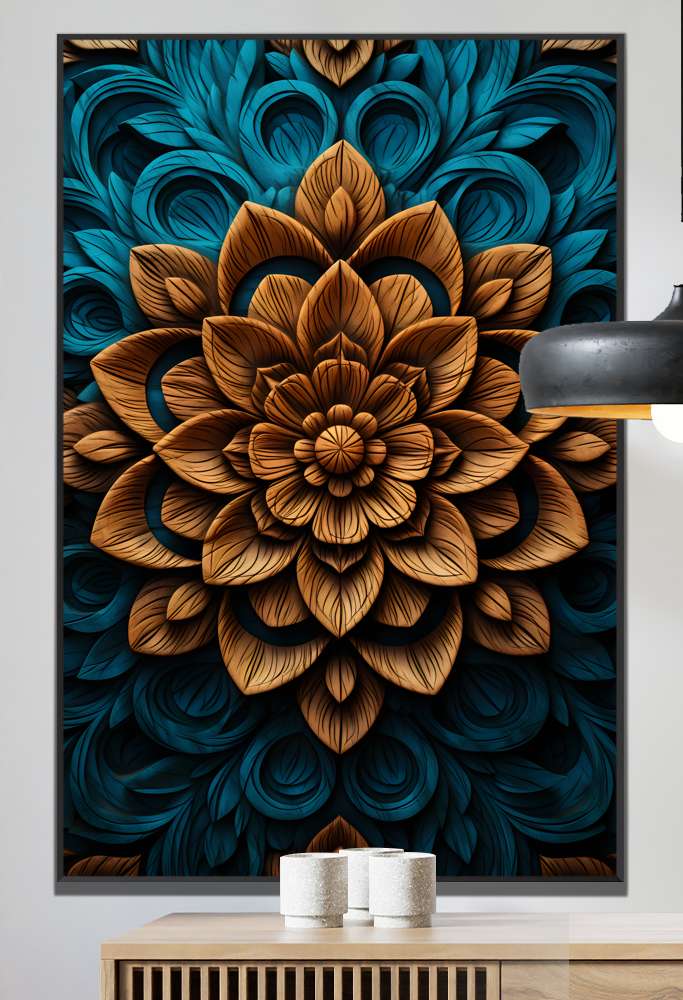 Este belíssimo quadro decorativo de mandala em tom de marrom com fundo azul irá transformar completamente o ambiente da sua casa. As mandalas, com sua complexidade e simetria, simbolizam harmonia e equilíbrio, sendo utilizadas em práticas de meditação em várias culturas ao redor do mundo. A combinação dos tons terrosos do marrom com o sereno azul de fundo cria uma atmosfera cativante e relaxante, perfeita para trazer paz e tranquilidade ao seu espaço. Deixe-se envolver pela energia positiva deste quadro decorativo e adicione um toque especial de sofisticação à sua decoração.