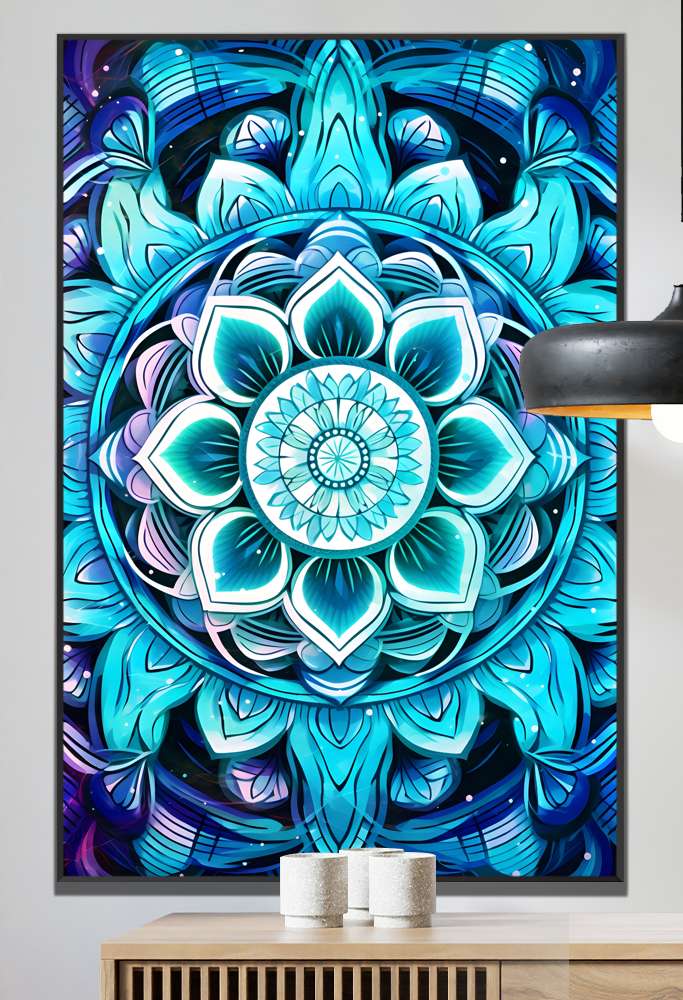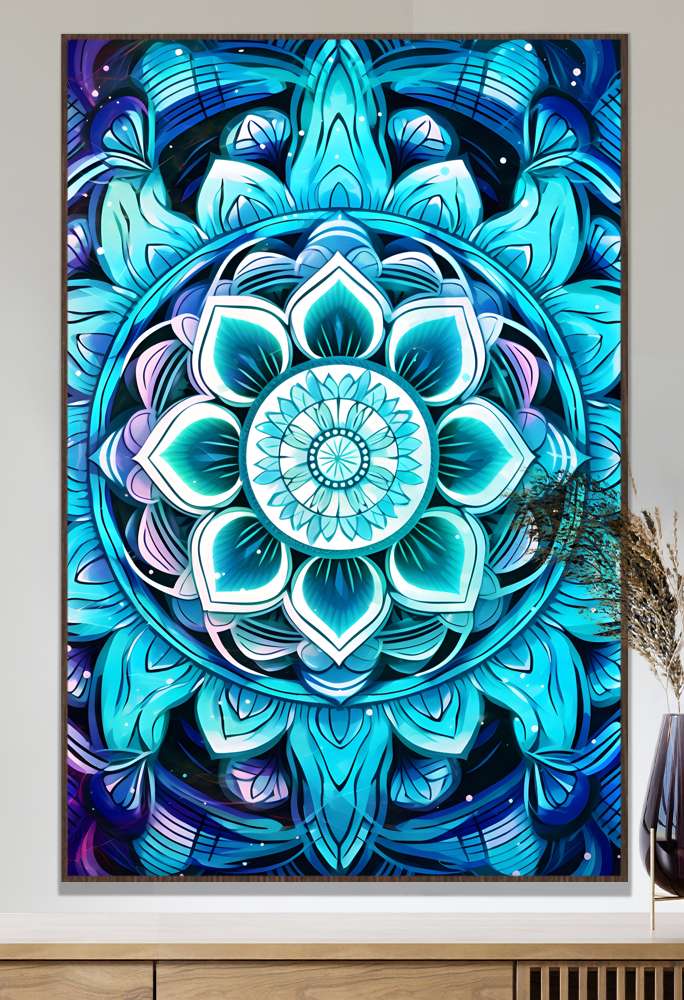 Este belíssimo quadro decorativo de mandala em tons de azul turquesa e roxo é mais do que uma simples peça de decoração - é um verdadeiro portal de tranquilidade e harmonia para o seu ambiente. A mandala, símbolo espiritual e ritual que representa o universo, traz padrões detalhados e repetitivos que instigam a serenidade. Os tons de azul-turquesa e roxo presentes nesta obra proporcionam uma sensação de profundidade, elevando a energia do espaço onde for colocado. Deixe-se envolver por essa atmosfera de paz e renove a energia da sua casa com esse quadro decorativo único. Garanta já o seu e transforme o seu lar em um verdadeiro refúgio de tranquilidade.