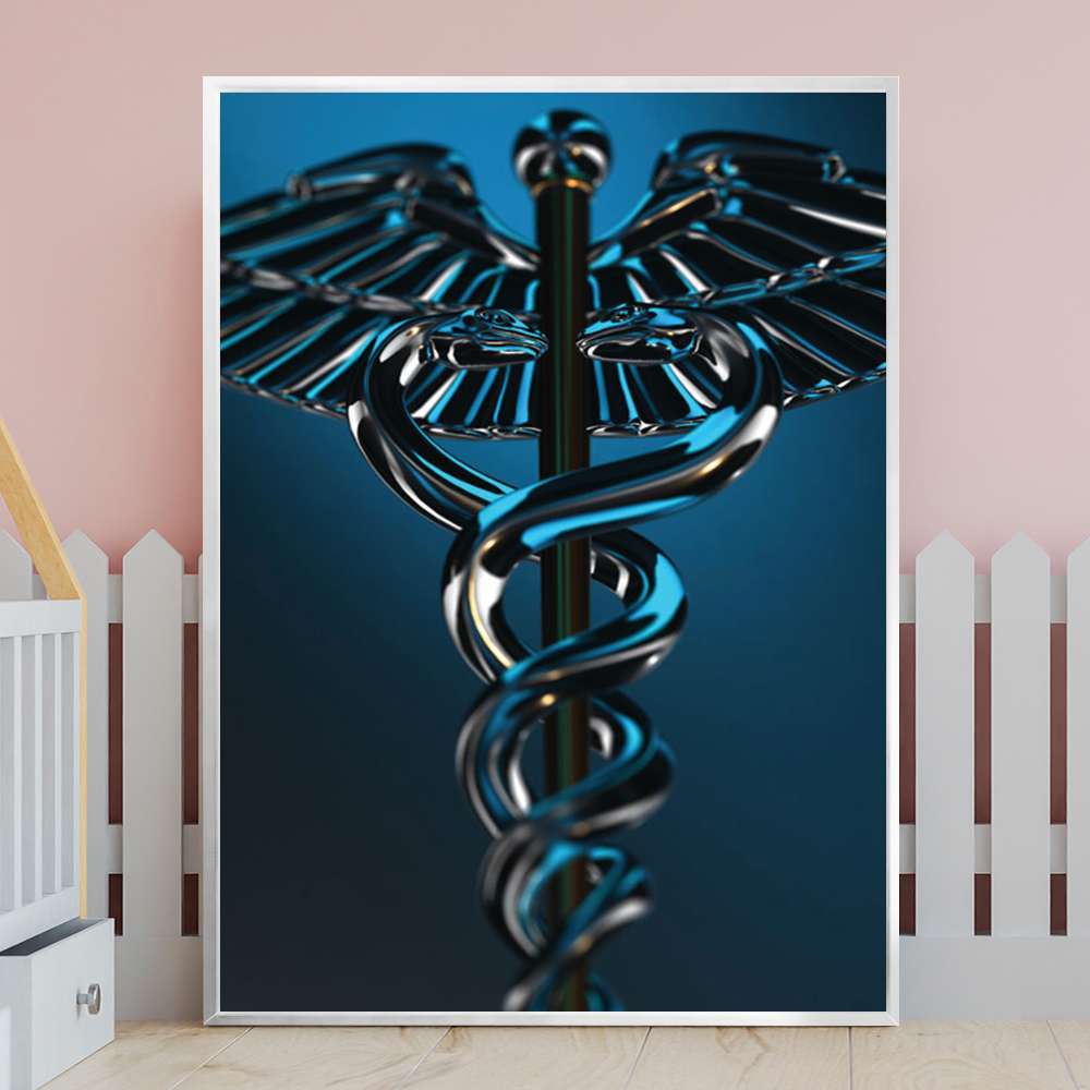 Transmita confiança e profissionalismo ao seu espaço com o Quadro Decorativo Objeto Ficcional Caduceu. Este símbolo ancestral de cura e sabedoria é ideal para decorar consultórios médicos e clínicas de saúde, trazendo uma atmosfera de respeito e cuidado. Adicione sofisticação e significado ao seu ambiente, homenageando os dedicados profissionais da área da saúde. Seu espaço merece essa representação única de proteção e prática médica.