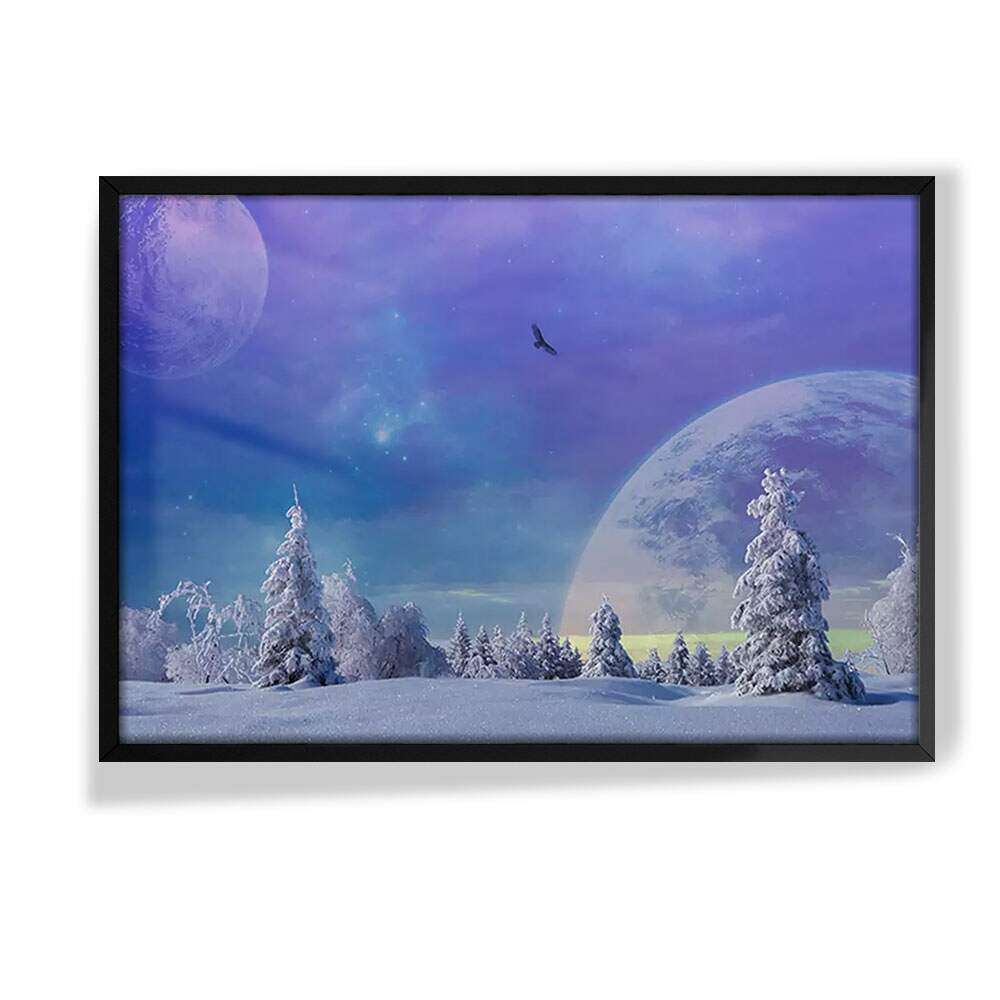 Quadro Decorativo Paisagem Lua e Neve
