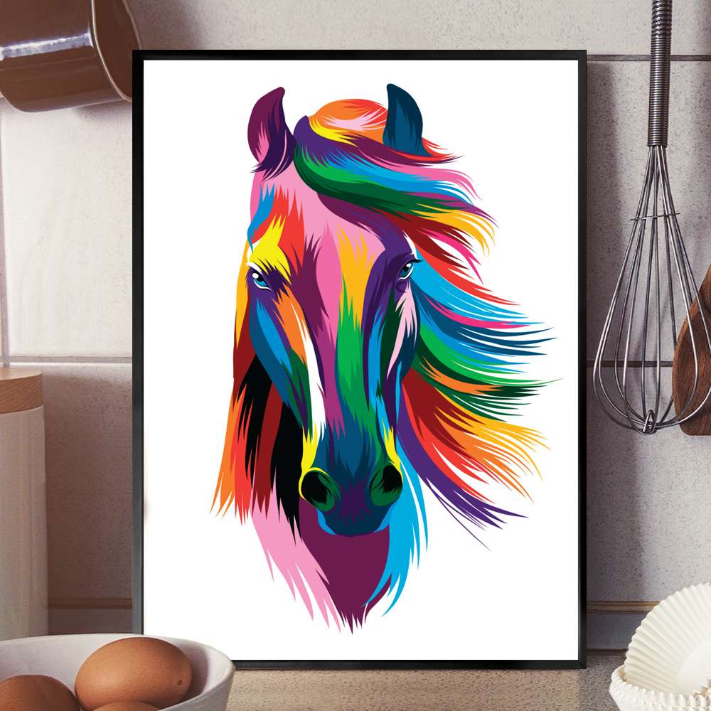 Transforme sua decoração com o Quadro Decorativo Pop Art Cavalo Colorido! Inspirado no movimento artístico que combina imagens do cotidiano com cores vibrantes, este quadro é uma verdadeira obra de arte contemporânea. Os cavalos, animais majestosos por natureza, ganham destaque neste estilo pop art, revelando sua elegância e imponência de forma inovadora e cativante. Adicione um toque de sofisticação e impacto à sua decoração com essa peça única e cheia de personalidade. Conquiste um ambiente marcante e cheio de vida com esse quadro especial!