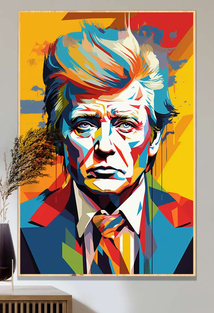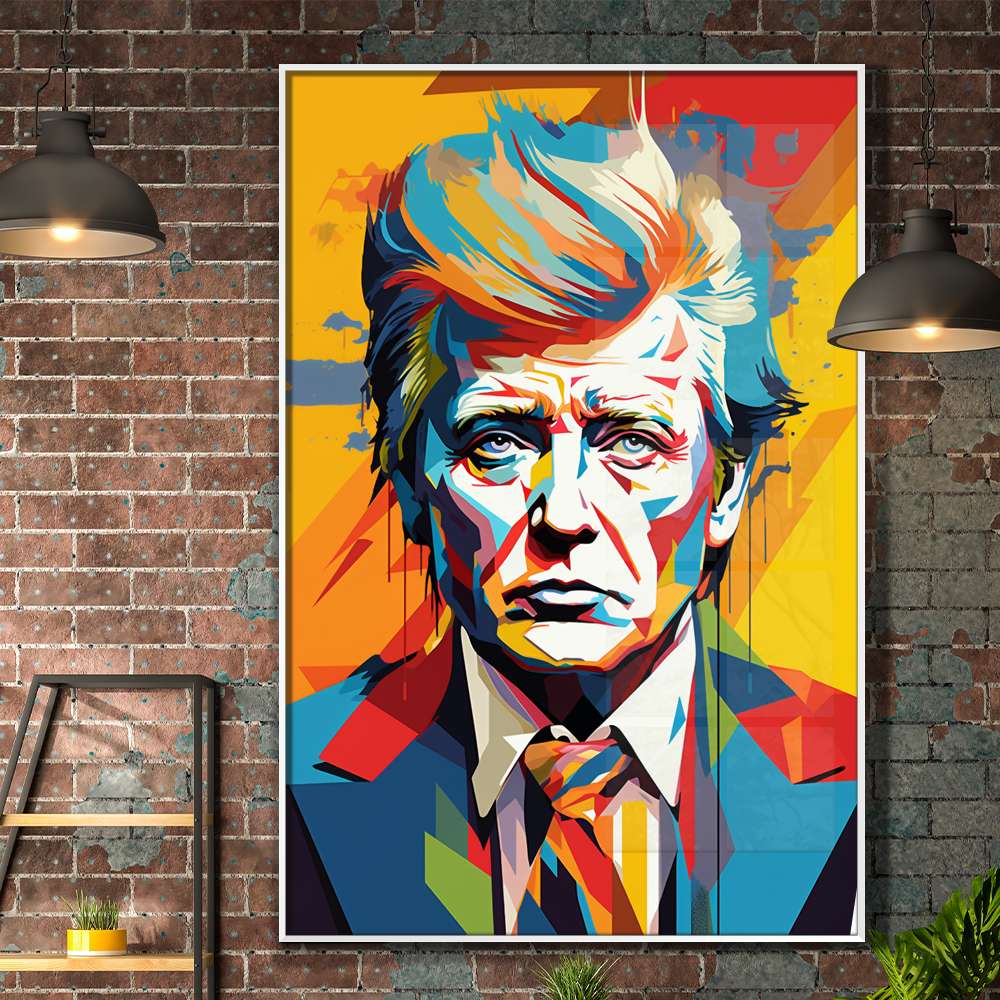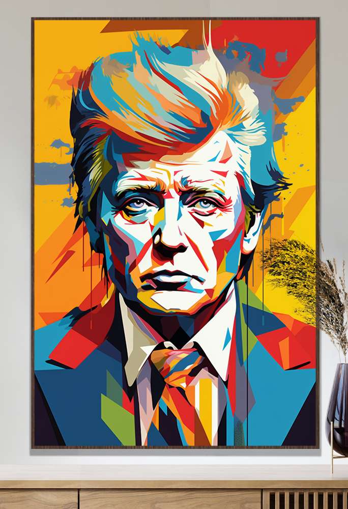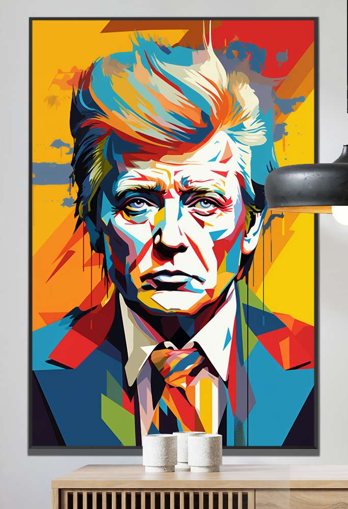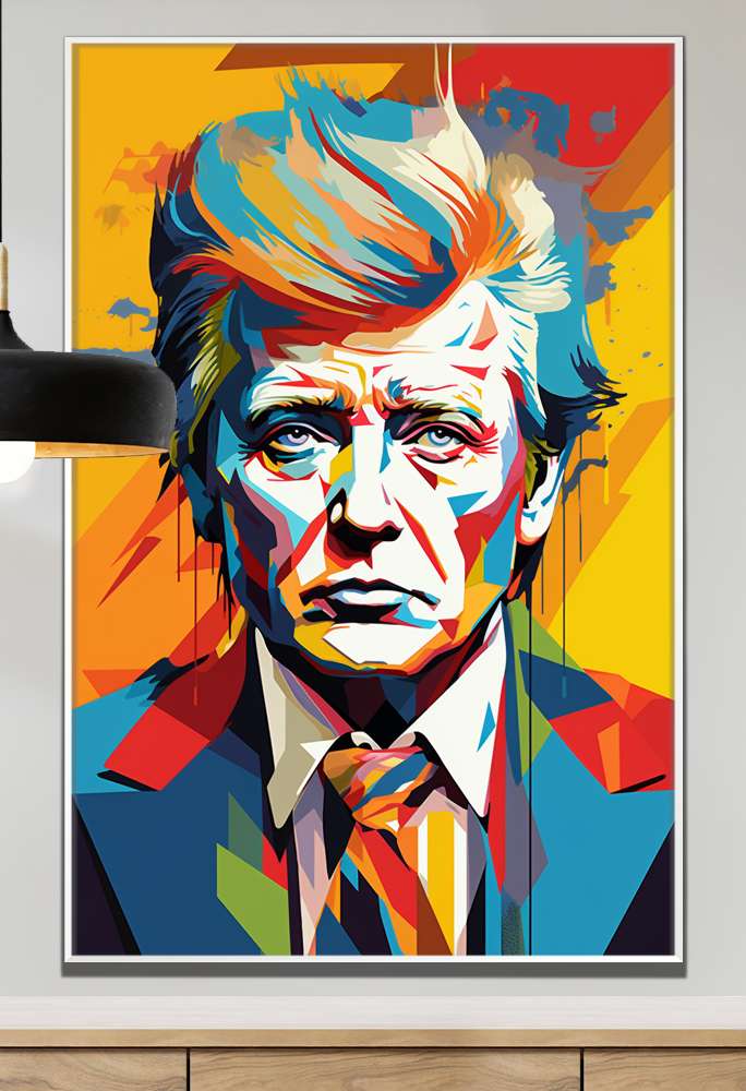 Mergulhe no universo da arte Pop Art com este quadro decorativo inspirado na figura pública de Donald Trump. Com cores vibrantes e formas geométricas, esta peça traz uma interpretação estilizada e colorida do presidente, destacando todo o impacto visual e conceitual desse movimento artístico. Adicione um toque moderno e ousado à sua decoração com este quadro que certamente se tornará o destaque do ambiente.