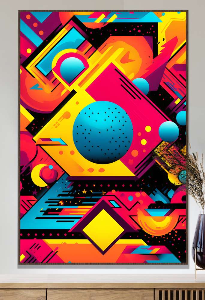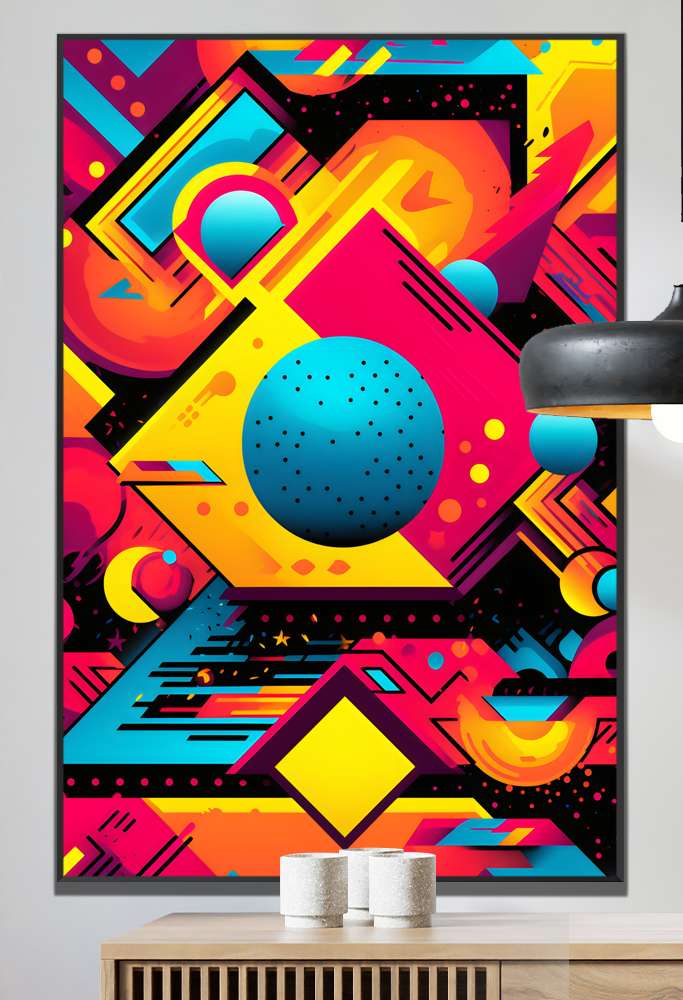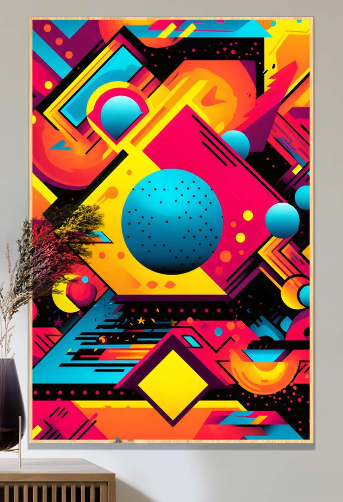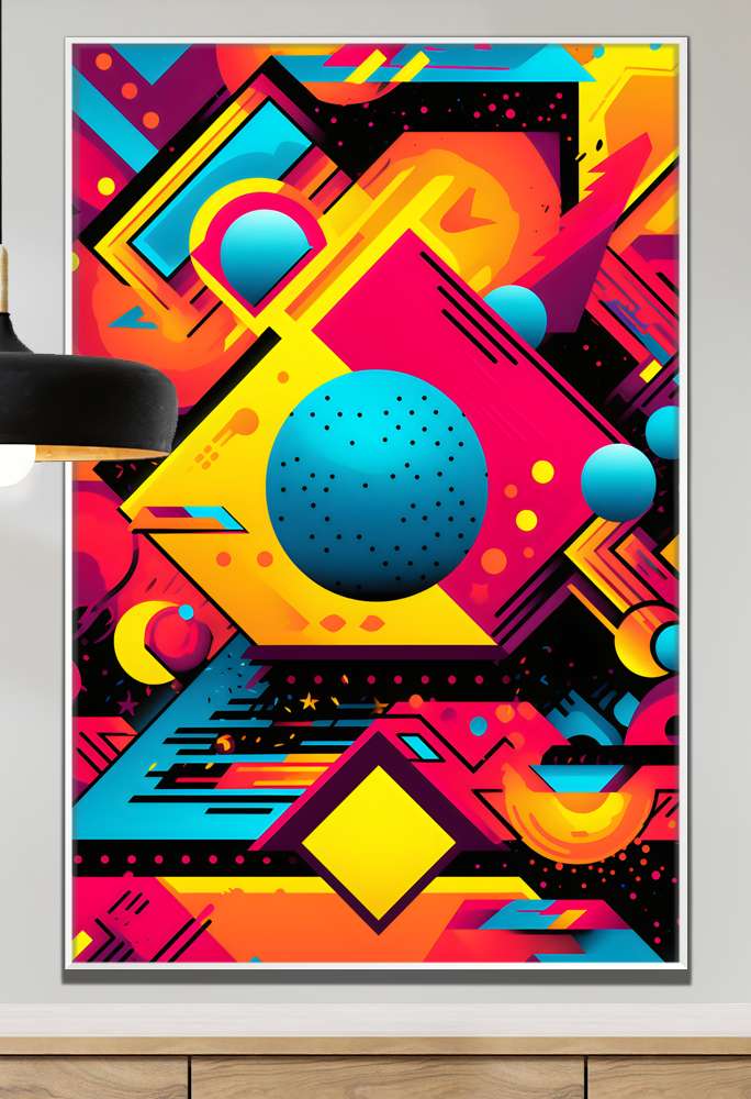 Transforme seu ambiente com o Quadro Decorativo Pop Art Tons de Azul e Rosa em Forma Geométrica. Inspirado no vibrante estilo pop art, este quadro apresenta formas geométricas em tons de azul e rosa que se combinam de forma dinâmica e moderna. Círculos, quadrados e linhas se unem para criar uma atmosfera artística cheia de energia e personalidade. Adicione um toque de cor e estilo ao seu espaço com esta peça única e marcante.