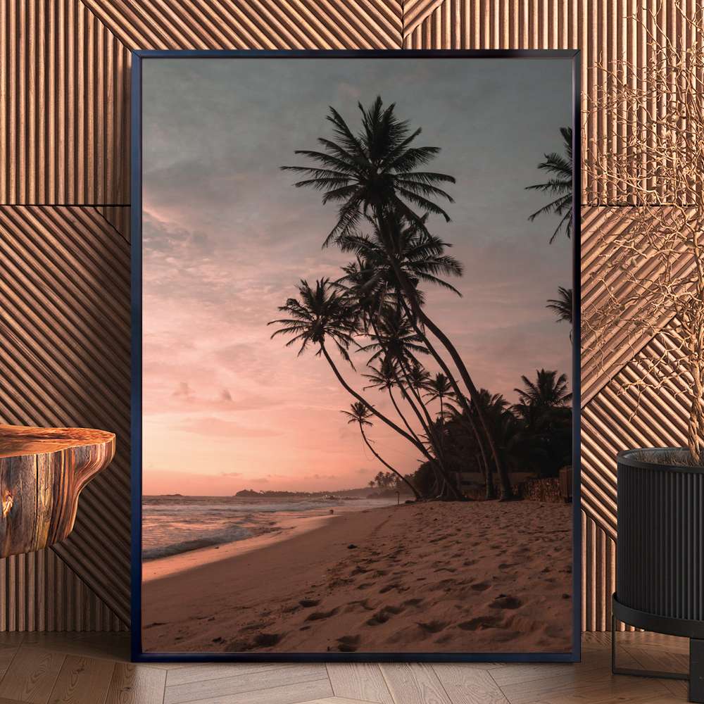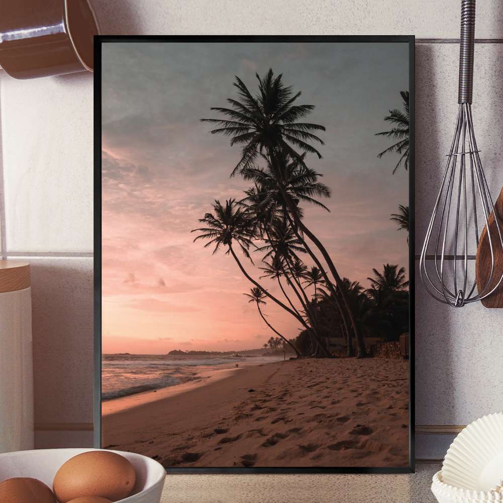 Quadro Decorativo Praia a Tarde e Coqueiros