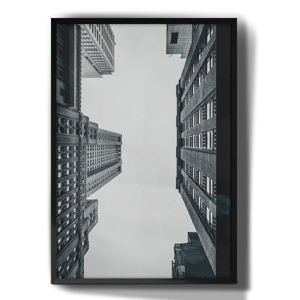 Transforme sua casa em um cenário urbano sofisticado com o Quadro Decorativo Prédios de Cidade Vista por Baixo. Uma obra que traz uma nova perspectiva, mostrando a imponência dos prédios quando vistos de baixo para cima. Ideal para quem busca um toque moderno e urbano na decoração, com tons monocromáticos em preto, branco e cinza. Adicione essa peça única à sua parede e deixe sua casa mais elegante e cosmopolita. Urbanismo, paisagem urbana, decoração moderna, arte abstrata, quadro monocromático, perspectiva única.