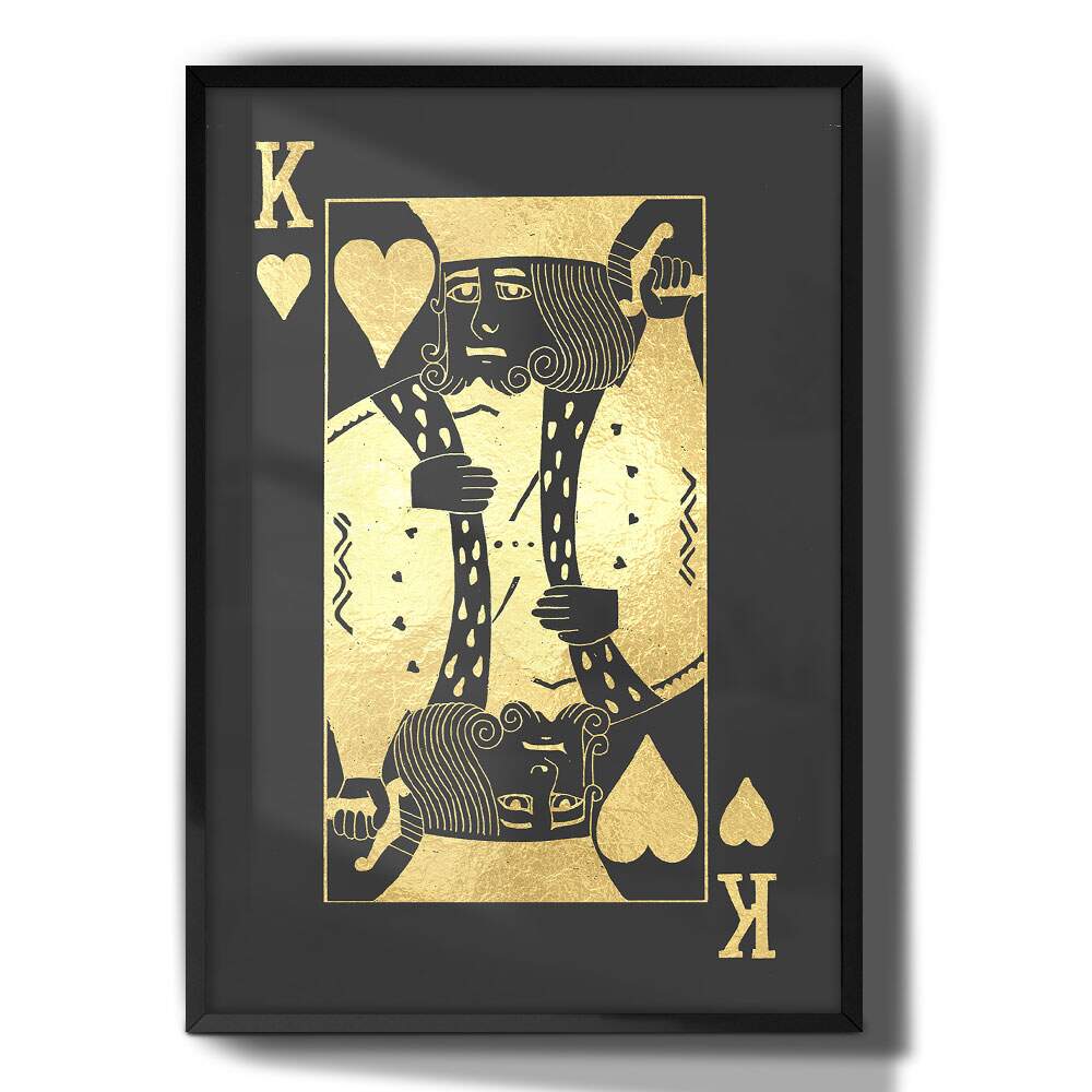 Quadro Decorativo Rei De Copas Preto E Dourado