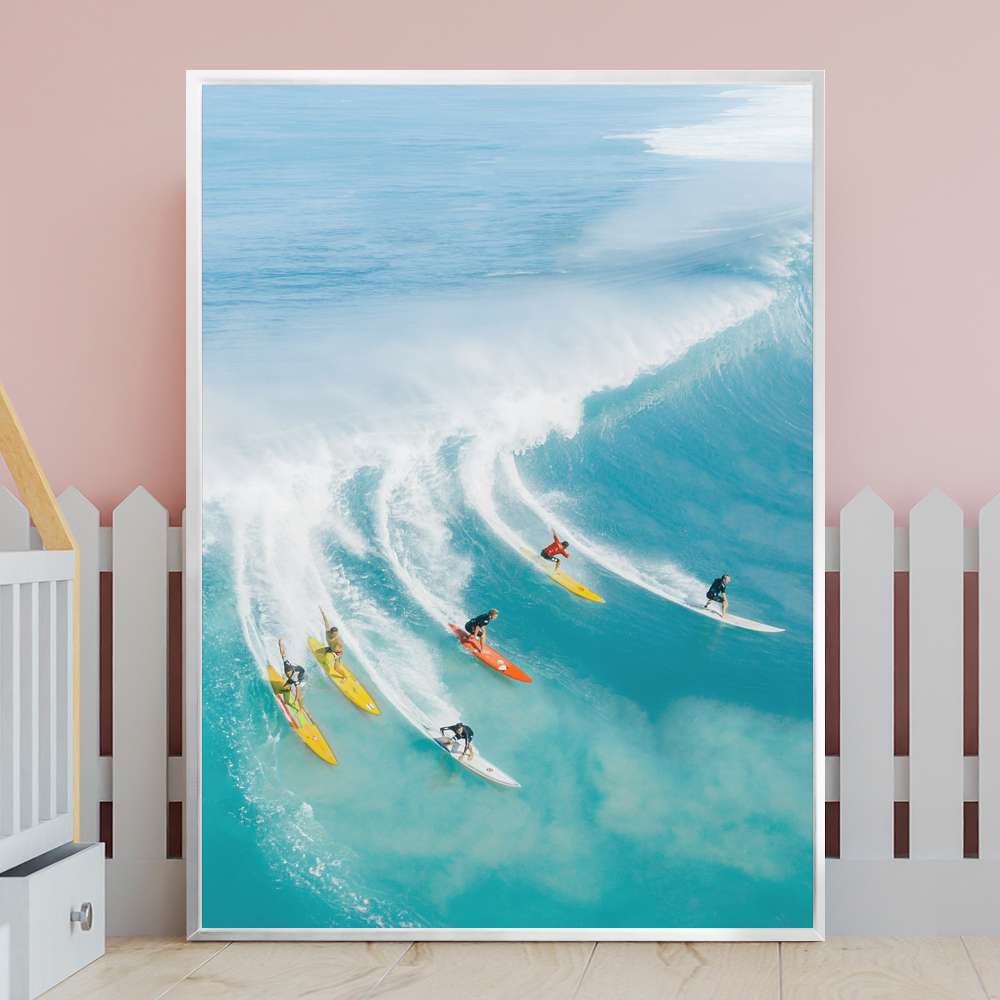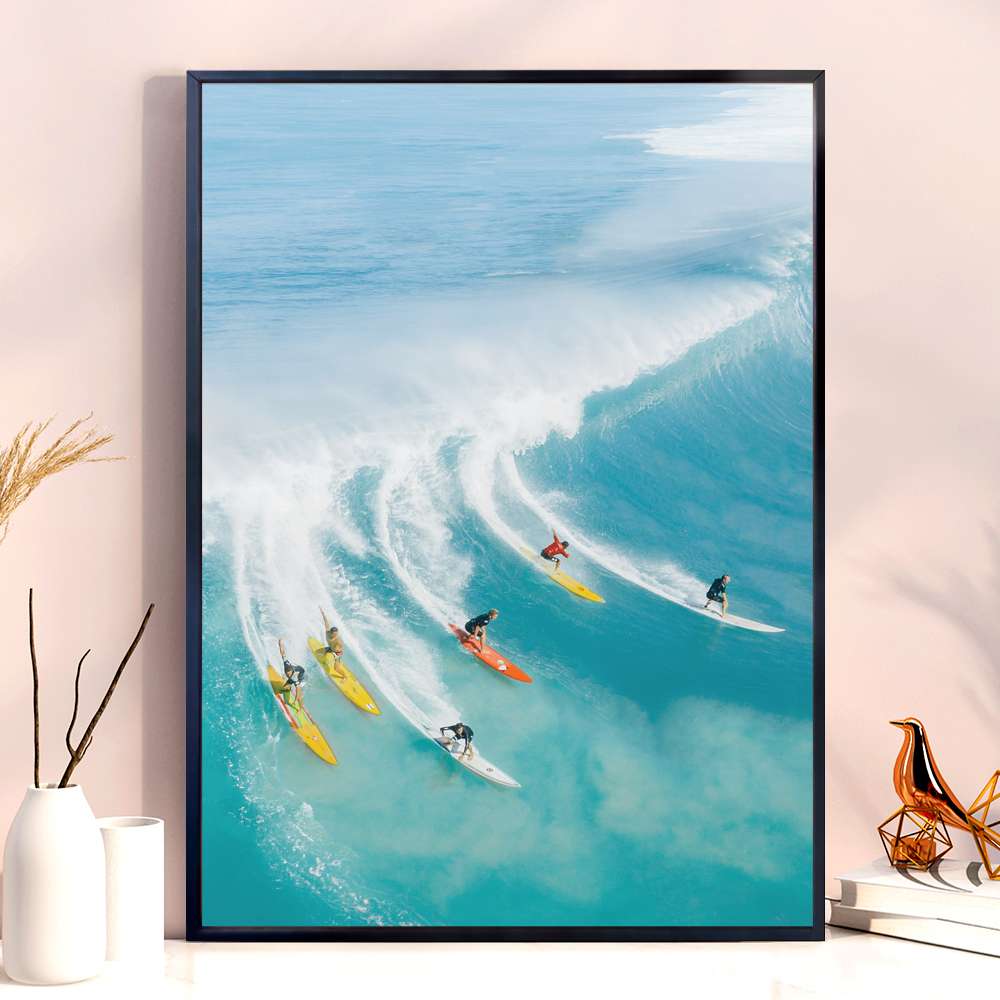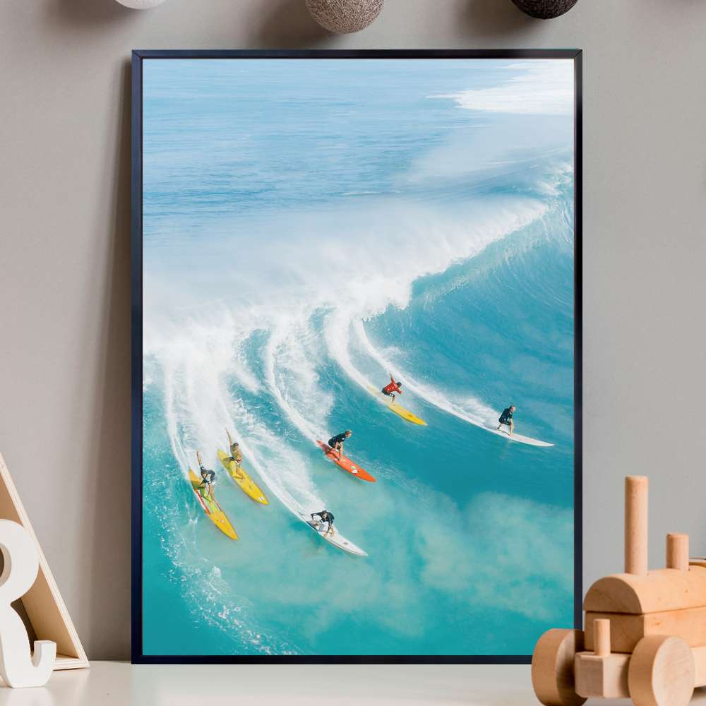 Transmita a energia do surf para a sua decoração com o Quadro Decorativo Surfando No Meio Do Mar Azul. Perfeito para os amantes deste esporte e estilo de vida, a imagem retrata surfistas desafiando ondas gigantes em um mar azul vibrante. Celebre a conexão do ser humano com o oceano e a busca pelo equilíbrio perfeito sobre as águas. Renove seu ambiente com a adrenalina e liberdade do surf em destaque.