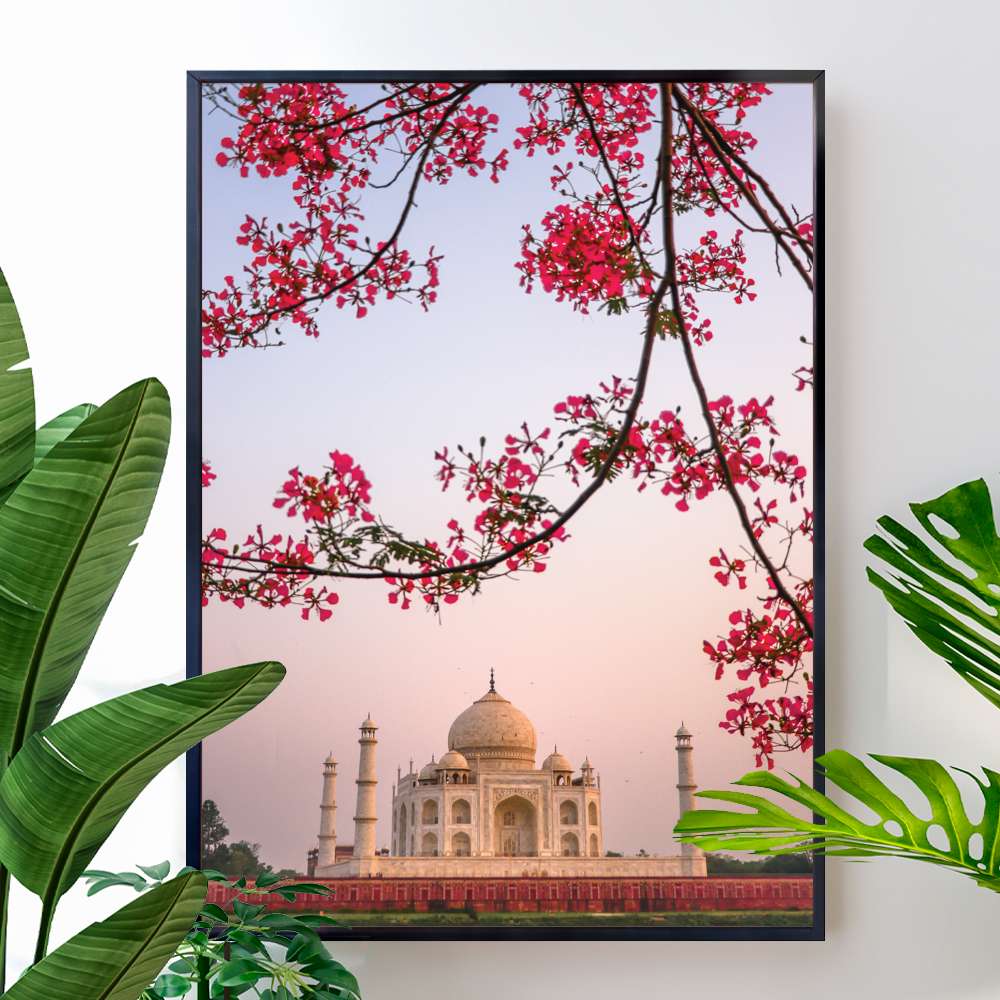Desperte o seu espírito viajante e a paixão pela cultura indiana com o Quadro Decorativo Turístico Taj Mahal Monumento. Esta peça única retrata a beleza do famoso monumento de mármore branco de Agra, Índia, envolto por folhas rosas que transmitem serenidade e tranquilidade. Ideal para quem busca uma decoração refinada e sofisticada em casa, este quadro traz consigo a história de amor eterno do imperador Shah Jahan por sua esposa Mumtaz Mahal, e é uma verdadeira obra de arte que embeleza e encanta qualquer ambiente. Permita-se mergulhar na espiritualidade e na magnificência arquitetônica do Taj Mahal com este quadro decorativo deslumbrante.