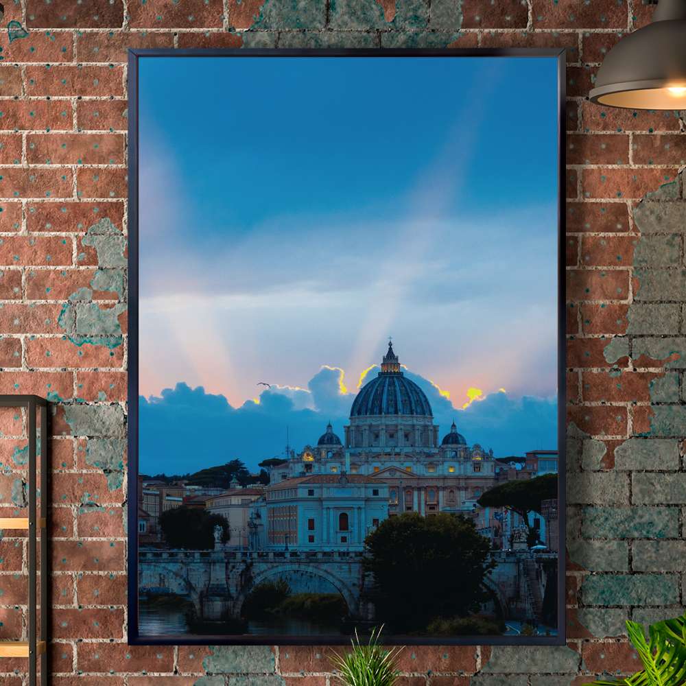 Sinta a atmosfera da deslumbrante Basílica de São Pedro no Vaticano em Roma com o Quadro Decorativo Turísticos Vaticano. Com a representação da arquitetura iluminada à noite, este quadro transmite sofisticação e encanto para a sua decoração. Deixe-se envolver pela riqueza de detalhes desta obra-prima renascentista que é um símbolo da fé católica. Transforme seu espaço com elegância e cultura, adicionando este quadro à sua coleção.