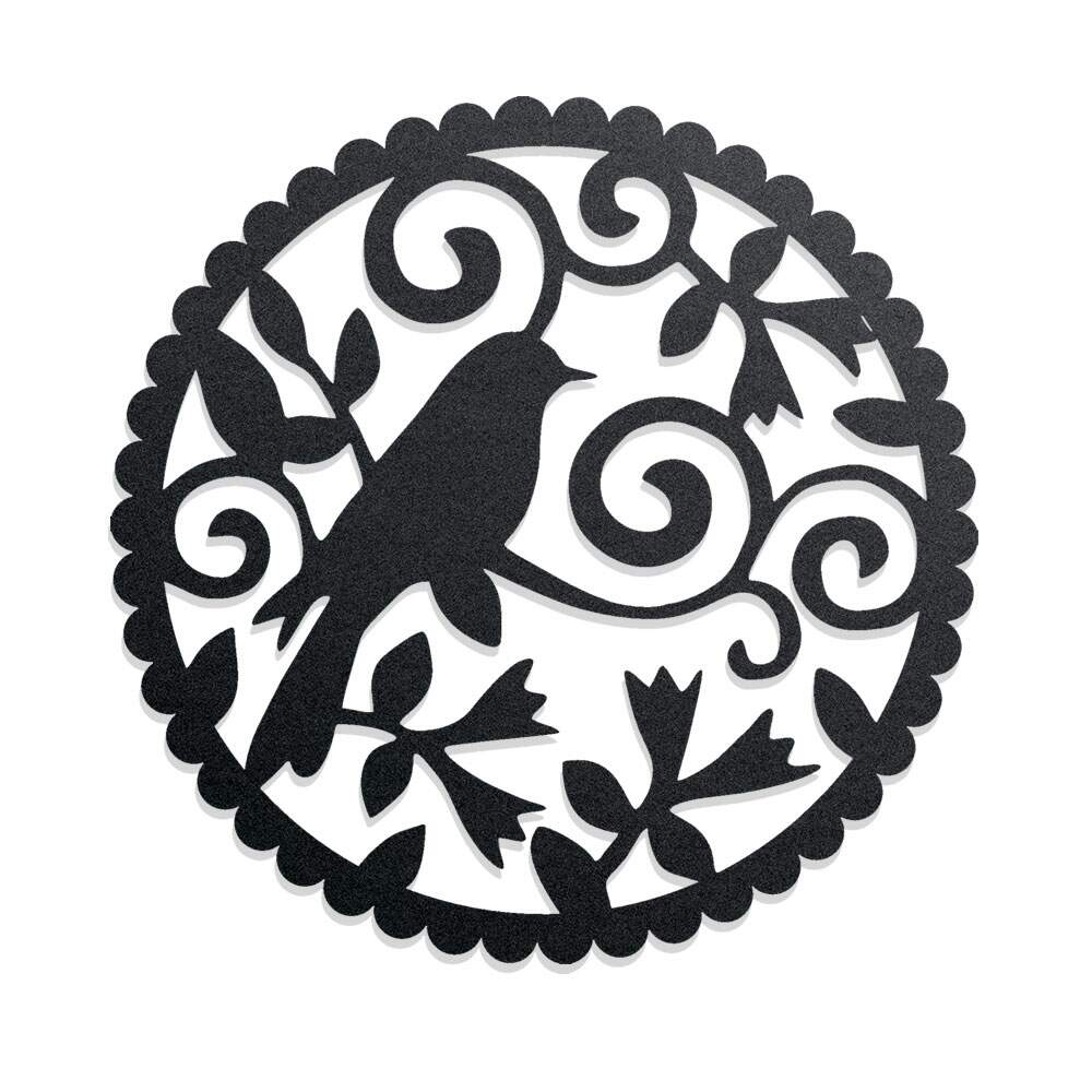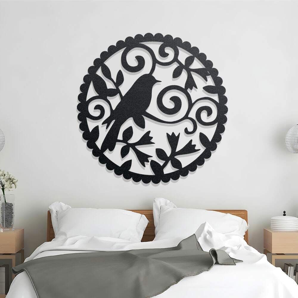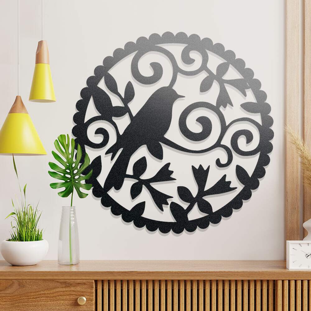 Quadro Decorativo Vazado Redondo Pássaro Arabesco