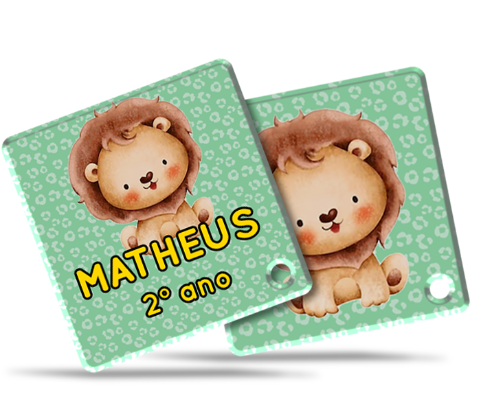 Nossas tags de acrílico oferecem a praticidade de informações visíveis de ambos os lados, garantindo uma identificação eficiente em suas mochilas.