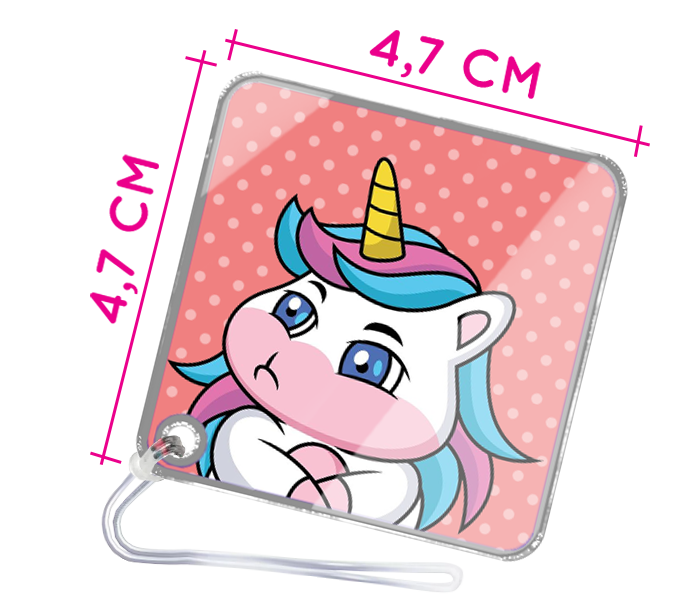 São 4 tags com dimensões de 4,7cm x 4,7cm, nossas tags de acrílico são compactas e ideais para a identificação personalizada de suas mochilas.